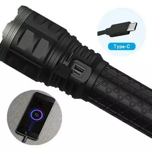 фонарь, кабель для зарядки USB-Type-C, 4х181350 аккумулятора 3.7V, сумка