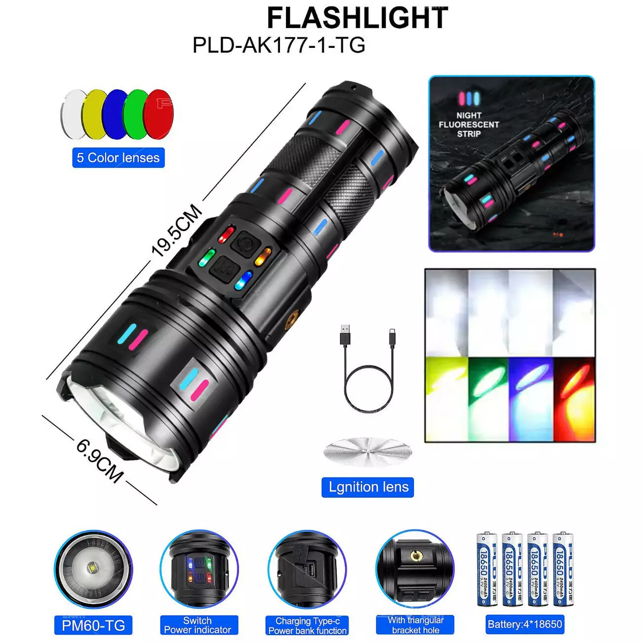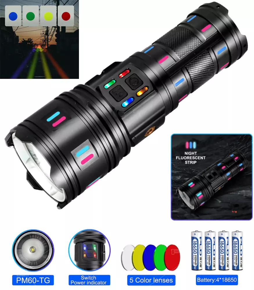 фонарь, 4х18650 аккумулятора, кабель USB-Type-C, 5 фильтров