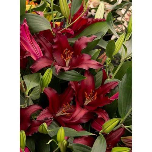 цветоноса взрослого растения превышает 1 м. Почти бордовая лилия
