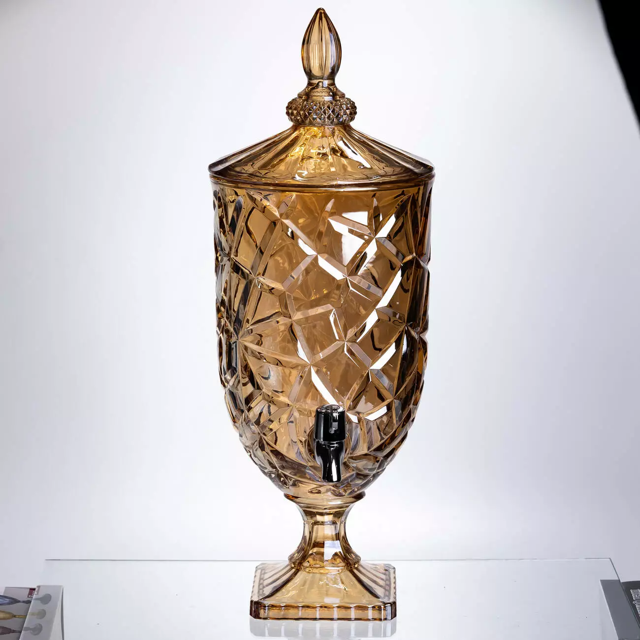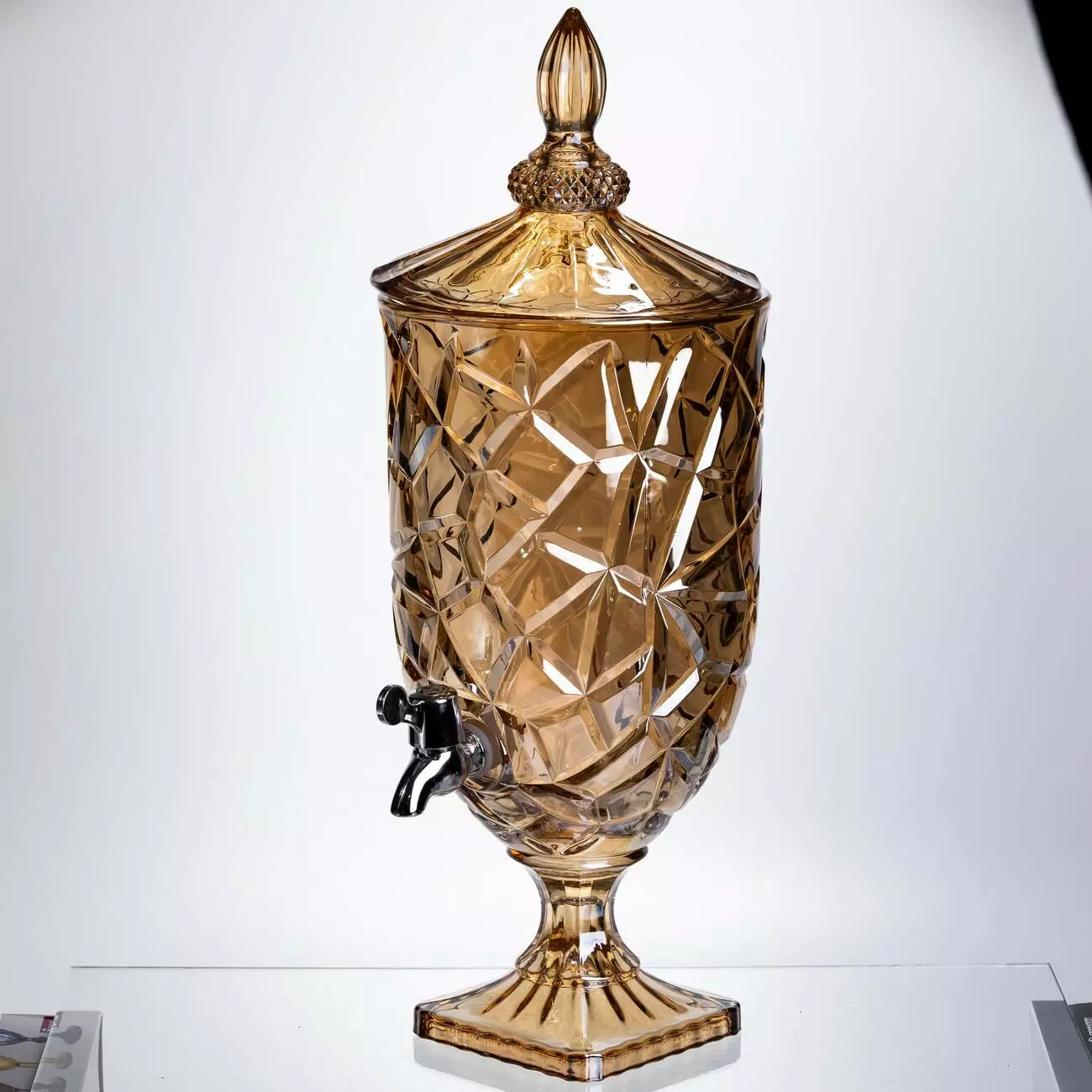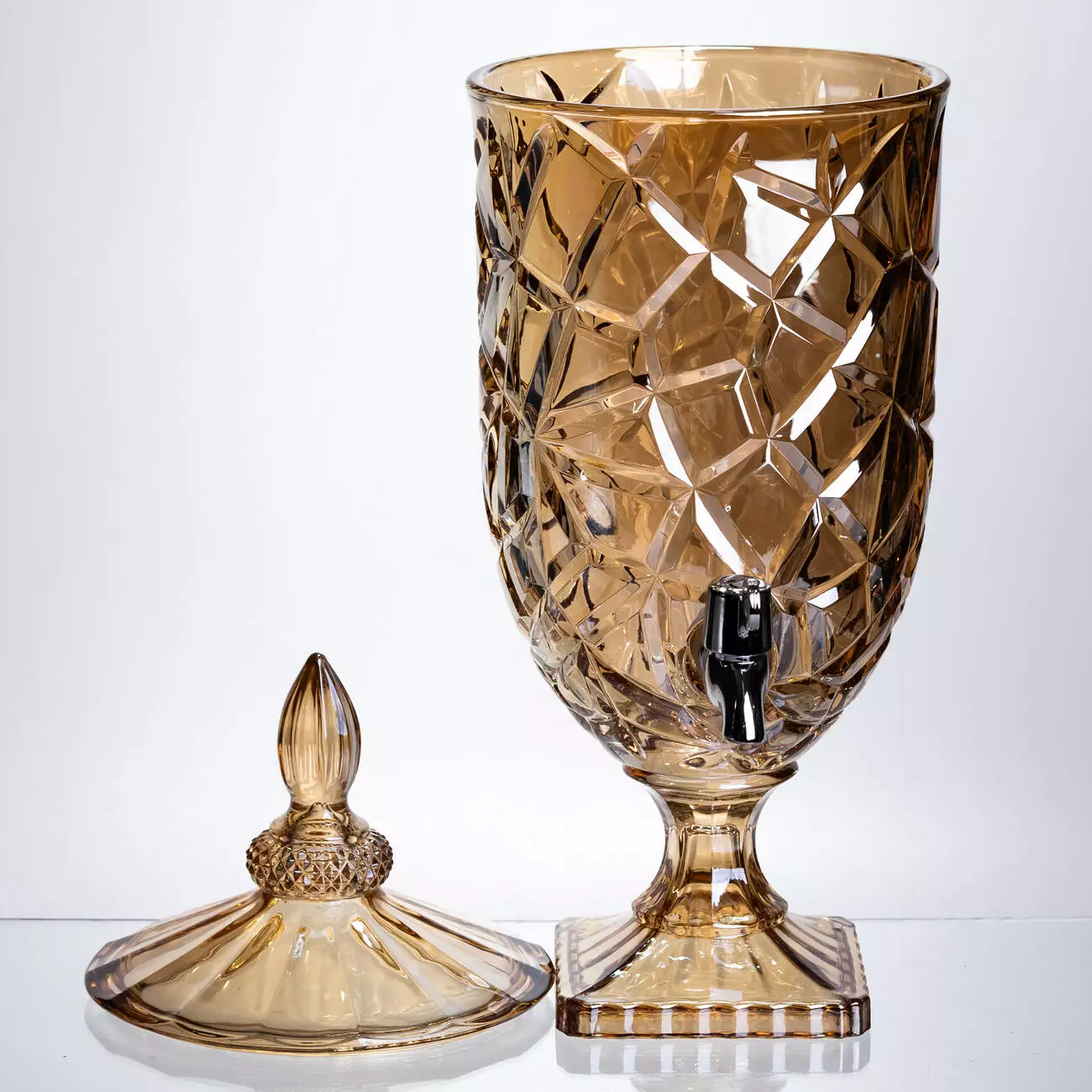 Місткий диспенсер у теплому медовому відтінку, створений для великих сімейних застіль та затишних свят. Об'єм дозволяє приготувати великий запас напою, а фактурне бурштинове скло перетворює звичайний лимонад на головну прикрасу столу.