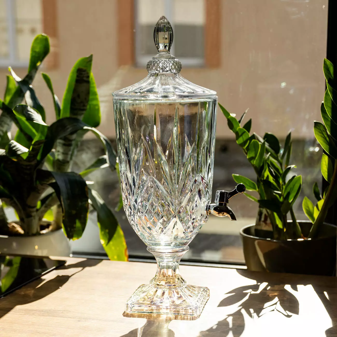 4. Преміальний вигляд: Висока фігурна ніжка та масивна кришка з навершшям підкреслюють статність моделі, перетворюючи звичайну подачу води чи соку на урочистий ритуал.