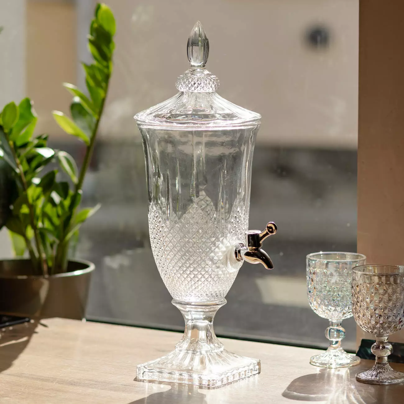 Елегантна лимонадниця з прозорого скла об'ємом 2 літри – ідеальне рішення для подачі напоїв на сімейних святах, фуршетах та пікніках.