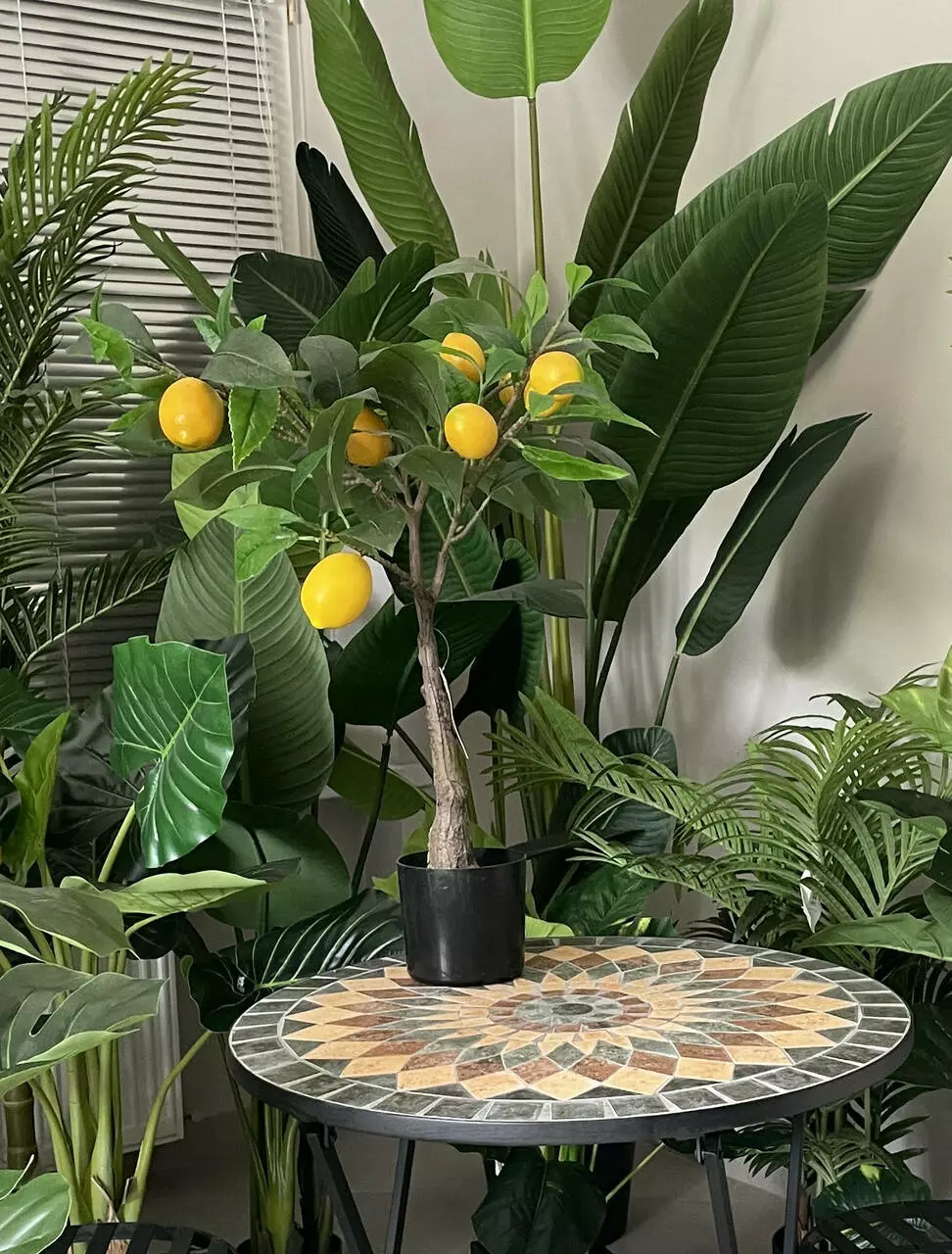 Це чудове штучне лимонне дерево - винятковий вибір для прикраси інтер'єру з реалістичним листям і чудовою імітацією лимона. Форма дерева відповідає сучасному будинку або простору, де потрібне струнке, але пишне дерево.