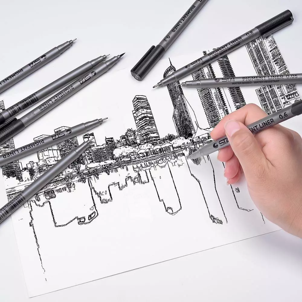 Удобен при использовании линейки и трафарета. В наборе представлено