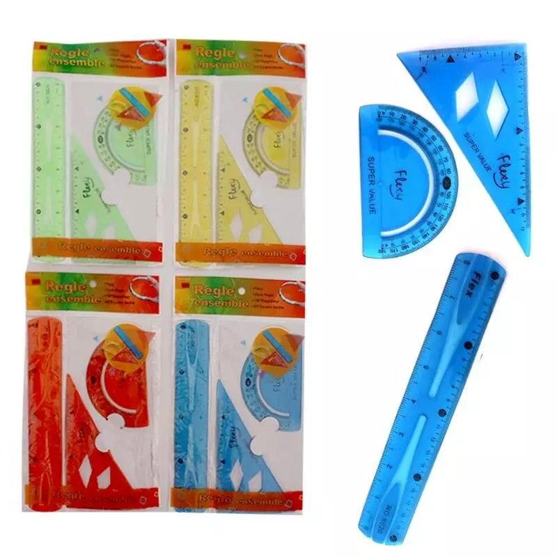 Фотография 1 товарной позиции интернет-магазина детских игрушек www.smarttoys.com.ua Лінійка-неламайка, набір 3 шт, (лінійка 20см, трикутник і транспортир), Імп