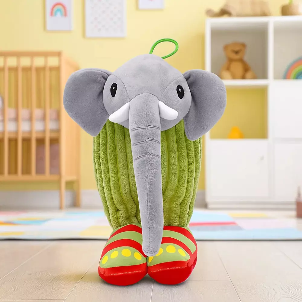 на полке. Наполнитель сохраняет форму, даже если слонёнка активно