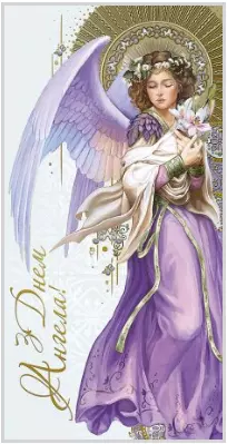 Листівка подвійна Е з брокатом та тисненням з конвертом в упаковці Е-4729 "З днем ангела!"