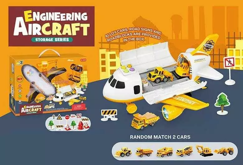Літак HS 8009 A (16) звук, світло, інерція, рухлива платформа, 2 машинки, у коробці