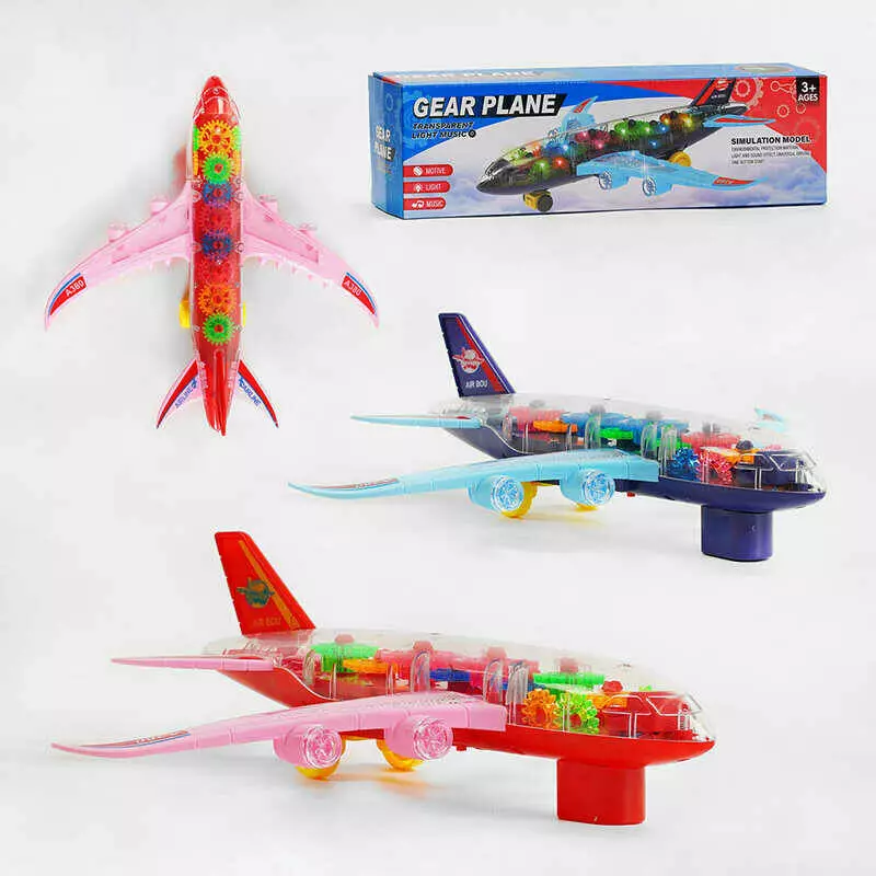 Літак KH 332-5 (120/2) 2 кольори, прозорий корпус, шестерні, світло, звук, колесо вільного ходу, на батарейках, у коробці