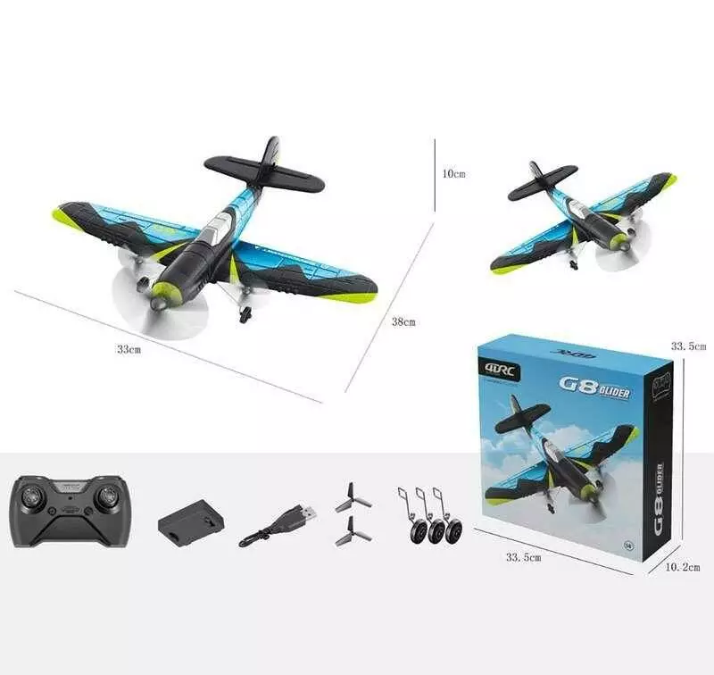 Літак на радіокеруванні 4 D-G 8 (20) акум. 3.7V, USB-кабель, шасі, запасні лопаті, пульт 2.4 GHz, підсвічування, в коробці