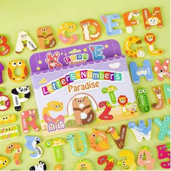 Магніти M 50542 (68) 42 елементи, англійська абетка, літери, цифри, товщина: 0.5 см, м’які магніти, в коробці