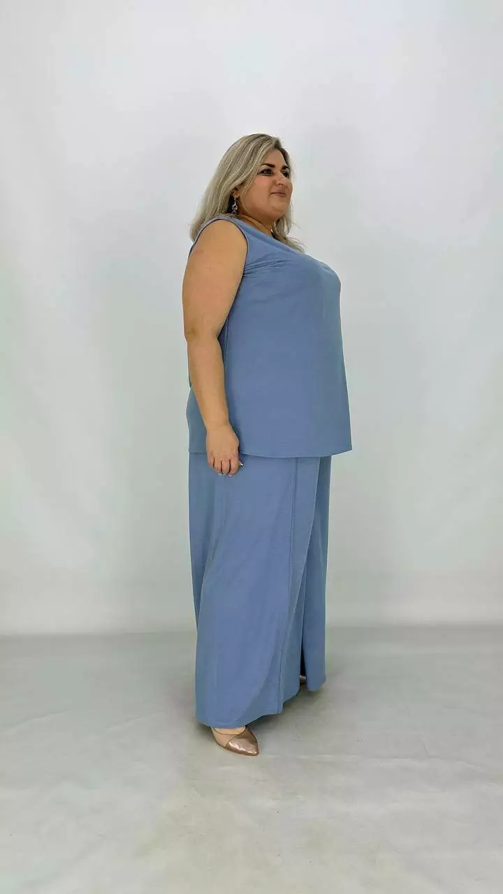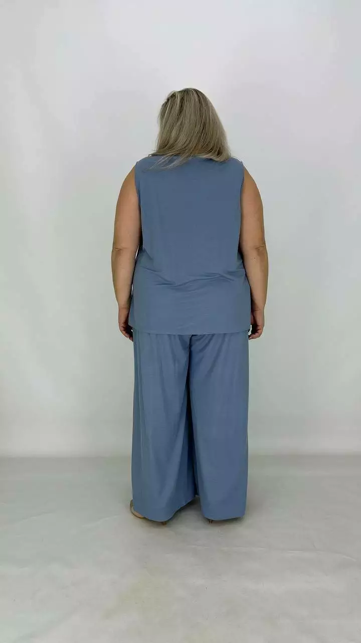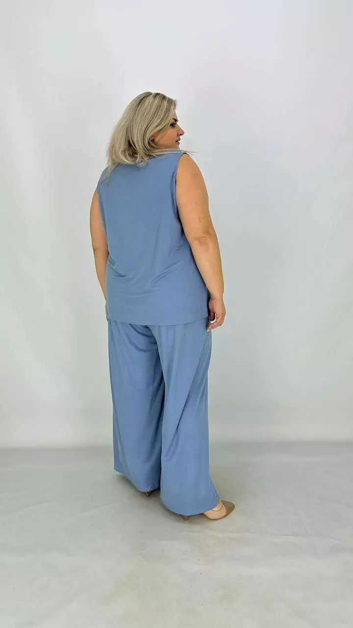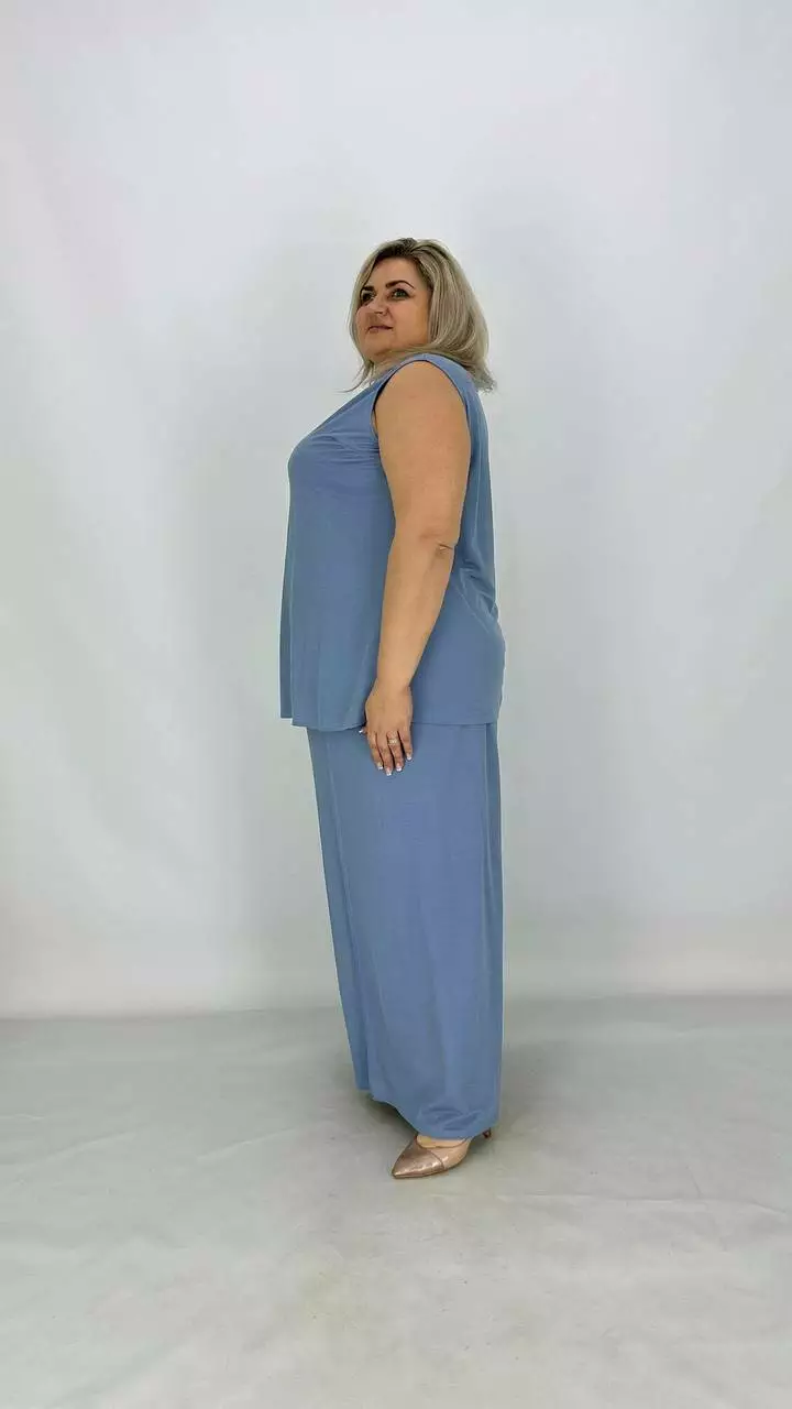 Літній комплект з тканини інтерлок із гарною розтяжністю. Тканина дихає, гіпоалергенна. створює ефект прохолоди, приємна до тіла, мнеться, гладити з вивороту, прати 40 градусів у ручному режимі. Фасон-майка злегка розкльошена. Піджак однобортний, рукав реглан -5/6 з манжетом. Кишені накладні із клапаном