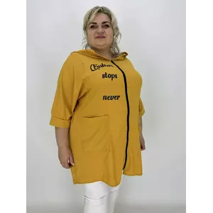З ніжної, м'якої тканини-американський креп, розтяжність невелика, вільний силует, рукав-кажан, підходить під будь-які груди, кишені накладні, капюшон, якісний накат.