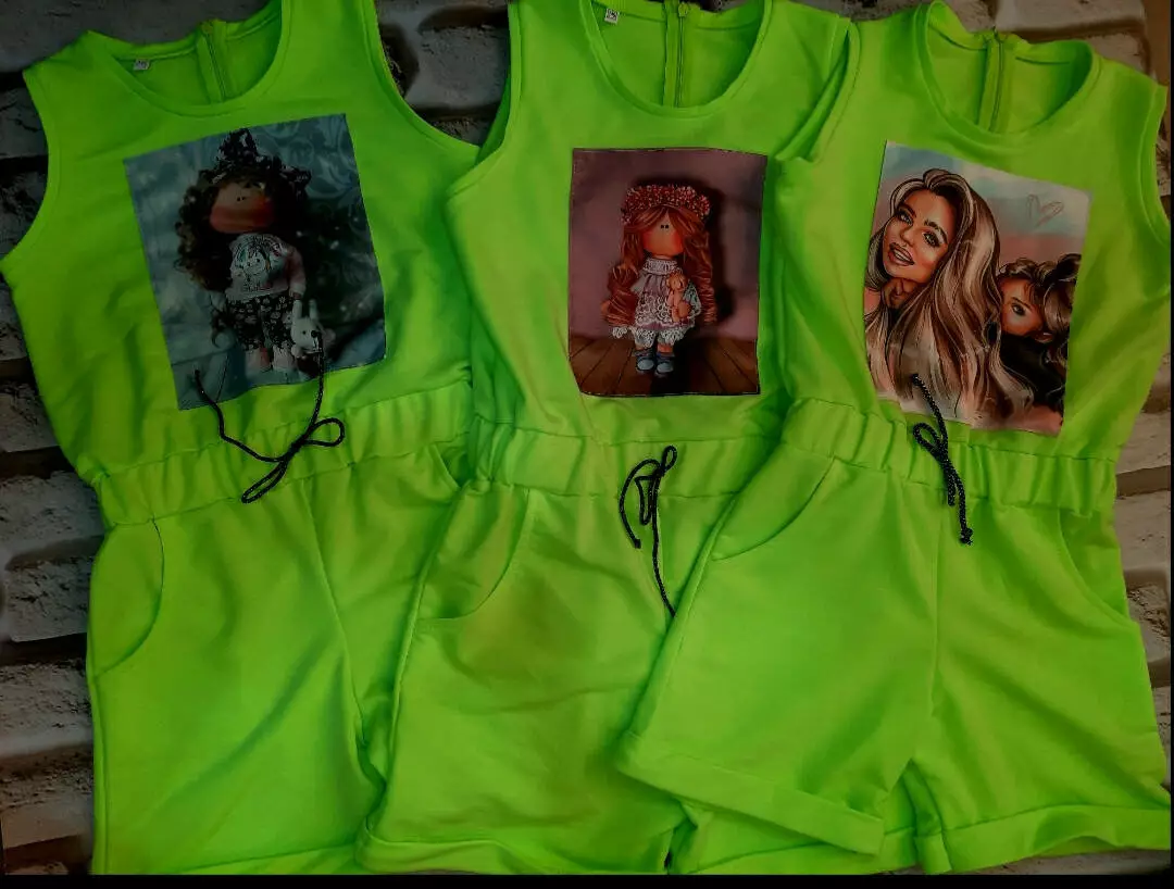 Дитячий літній комбінезон на дівчинку 7 років салатовий