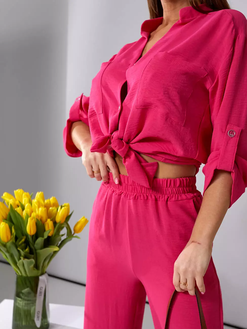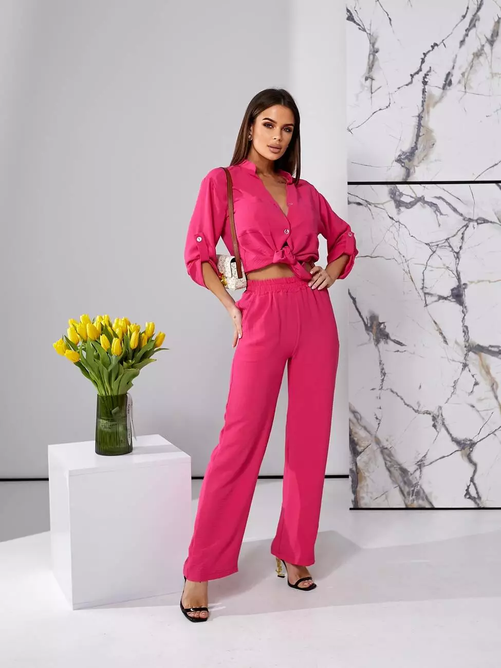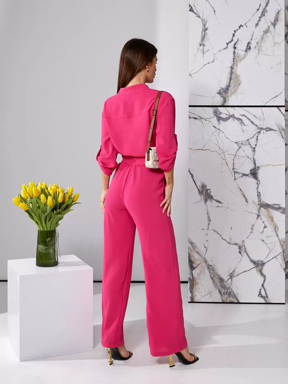 Брючний літній костюм малинового кольору