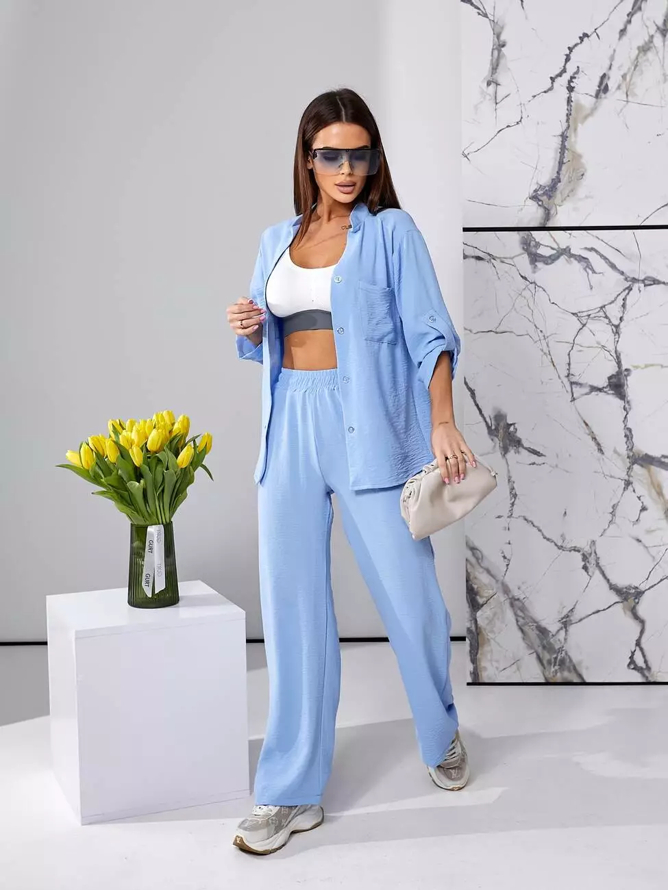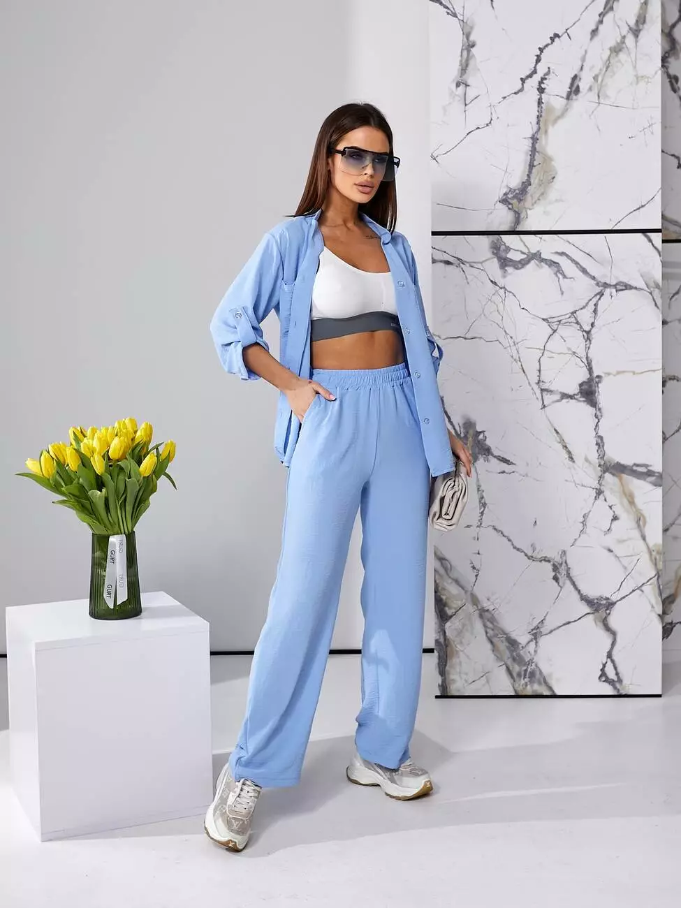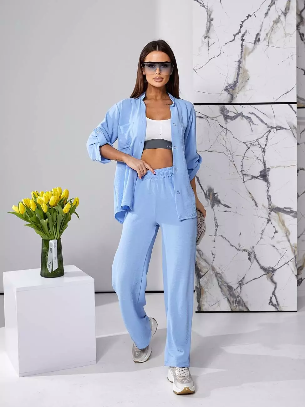 Костюм літній блакитного кольору з штанами