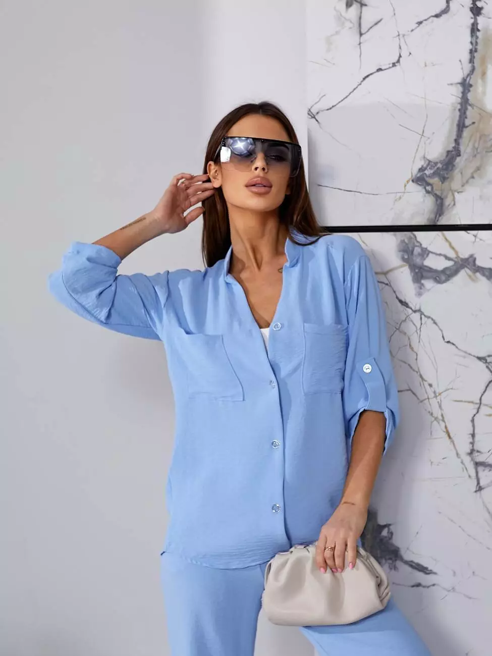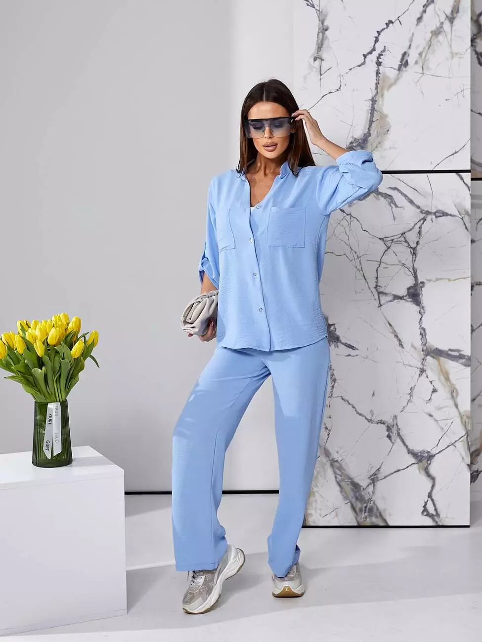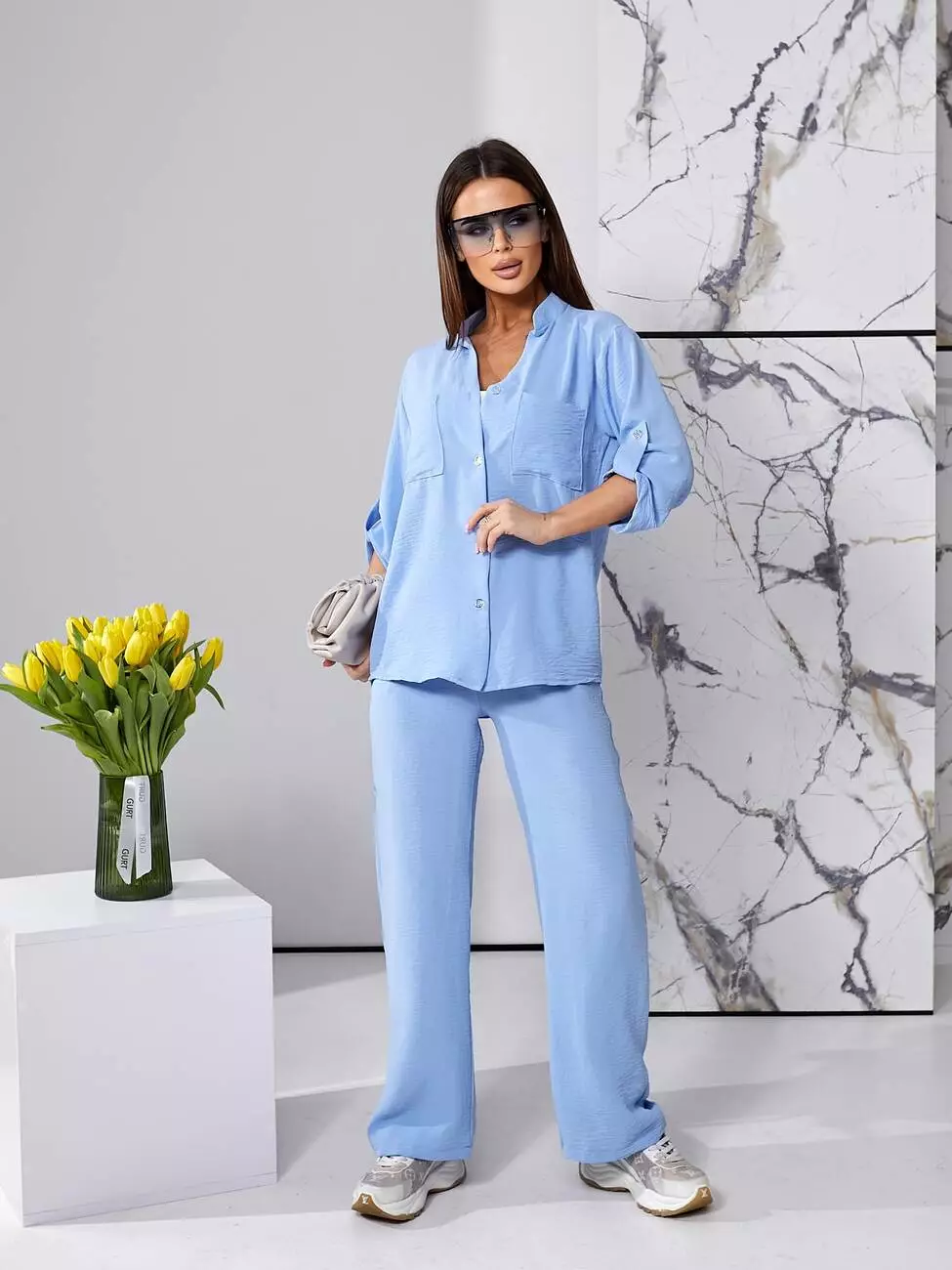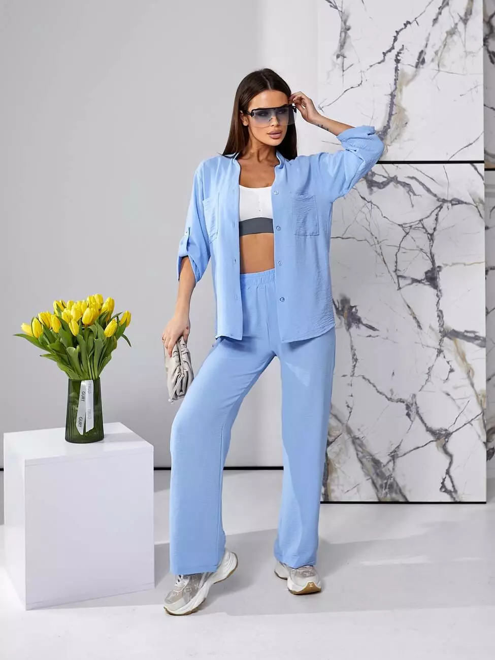 Костюм літній блакитного кольору з штанами