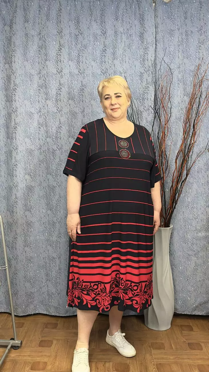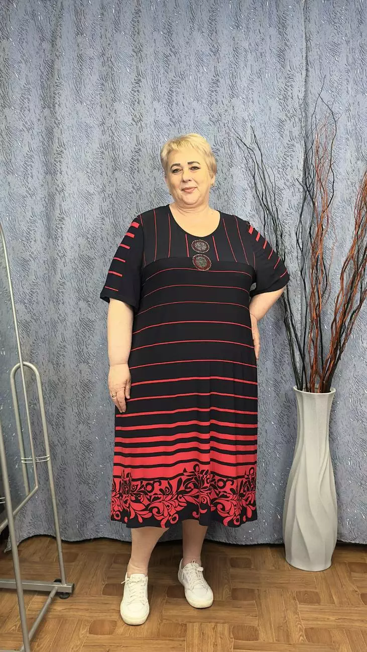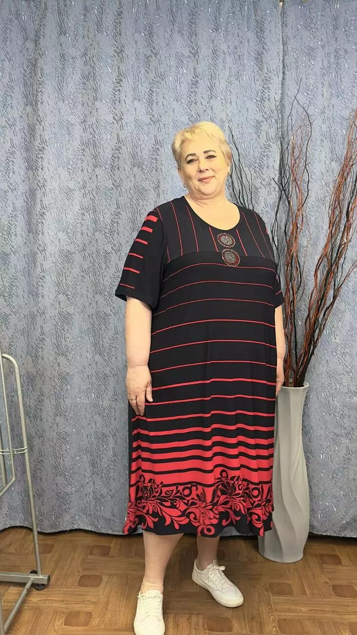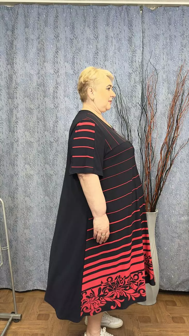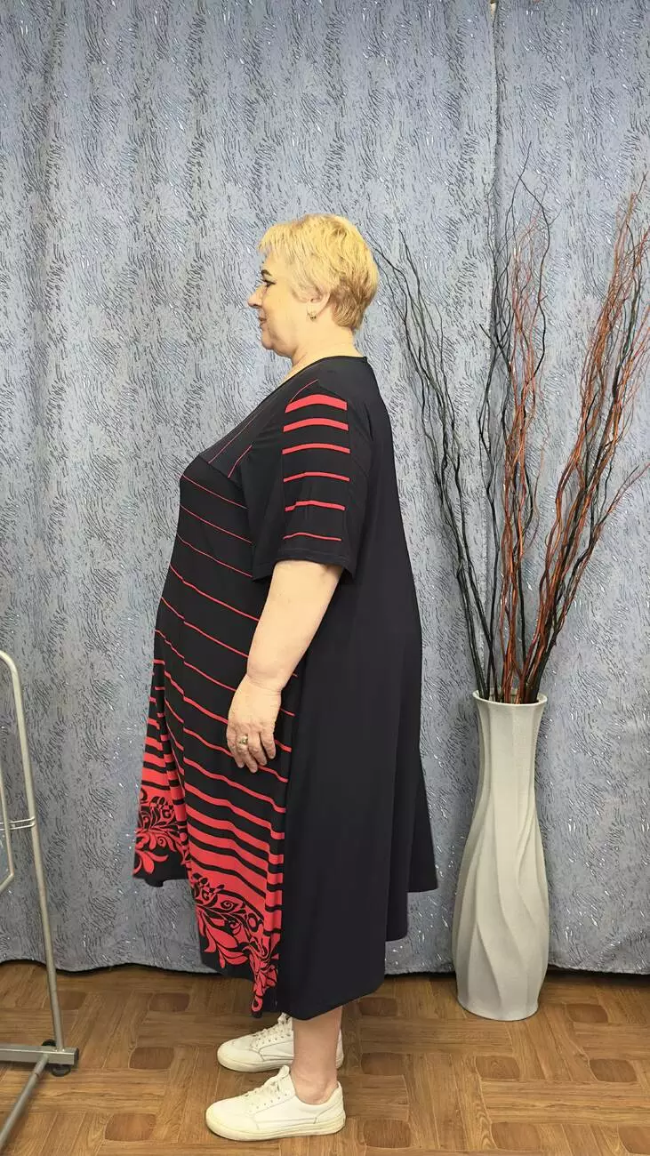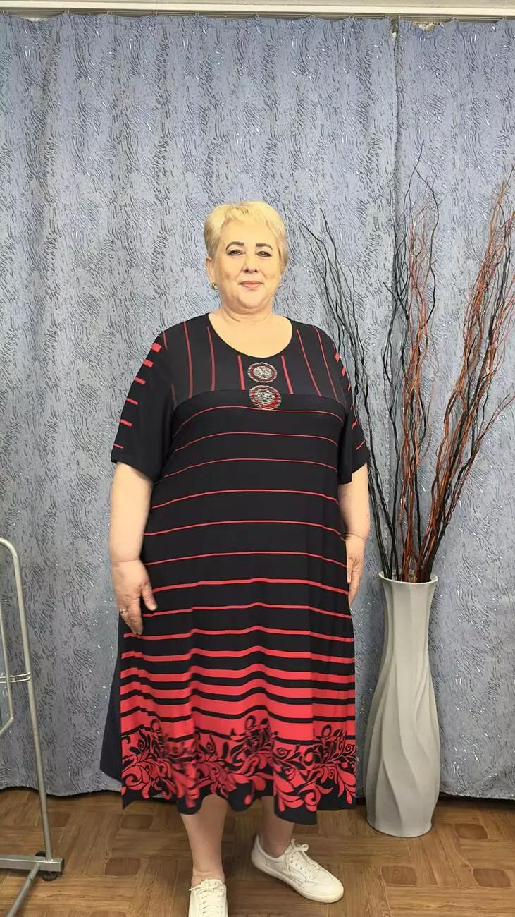 Розкльошена сукня з подовженими боками з трикотажу, олія п-ва Корея з гарною розтижністю. Тканина не меніться, не спекотна, не вимагає особливого догляду. Силует вільний, рукав втачний, на кокетці камінна аплікація.