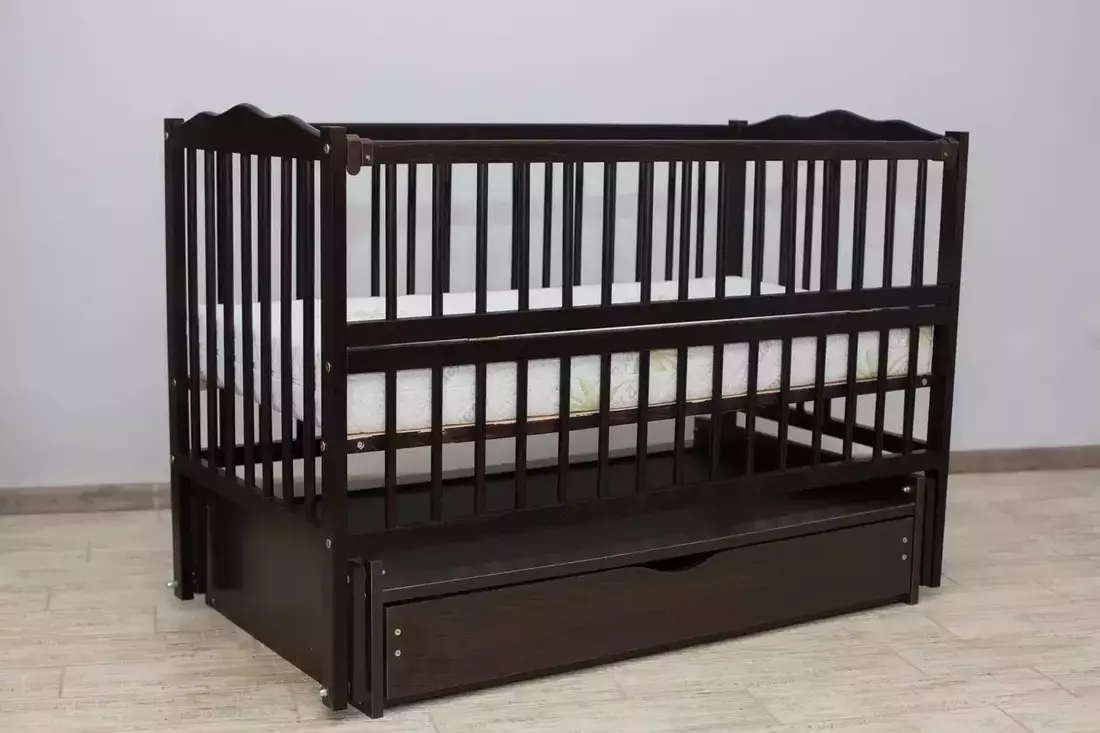 У ліжечку немов у мами в обіймах - це точно про наше ліжечко Веселка. Дитяче ліжко Веселка на шарнірах з підшипником та відкидною боковиною стане найбільш затишним місцем відпочинку Вашого малюка. Ліжечко укомплектоване всім необхідним: знімним маятником для заспокоєння і заколисування малюка, відкидною боковиною - для зручності батьків. Підматрацник має 3 рівні висоти, тому батьки завжди зможуть виставити його для своєї зручності, або залежно від віку Вашої дитини. Ліжечко укомплектоване шухлядою закритого типу. Це дуже зручно, адже найнеобхідніші речі можна зберігати відразу з ліжечком, а закритий тип шухляди допоможе уникнути накопичення пилу на важливих речах немовляти. Багатство кольорів дозволить підібрати ліжечко Веселка, яке ідеально підходить під інтер'єр дитячої кімнати. Все продумано до дрібниць - для Вашого комфорту.