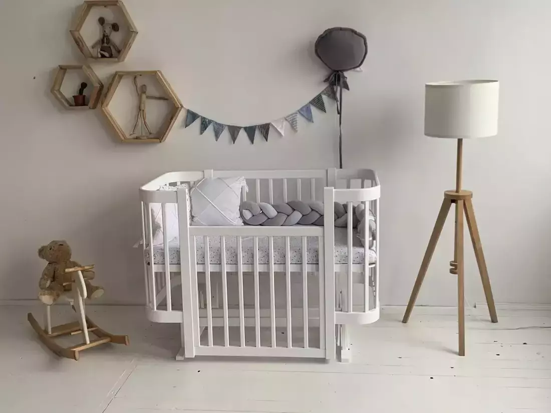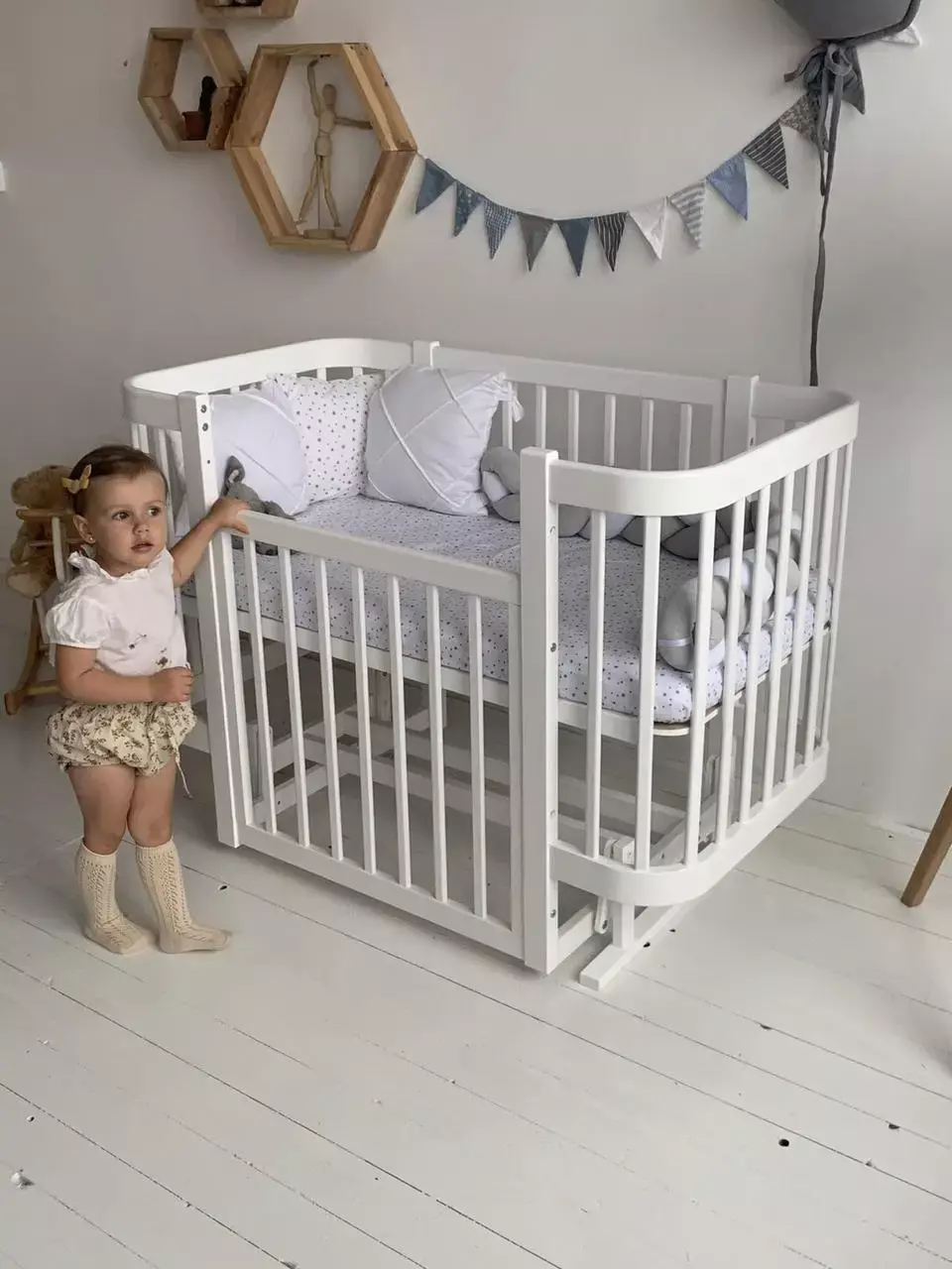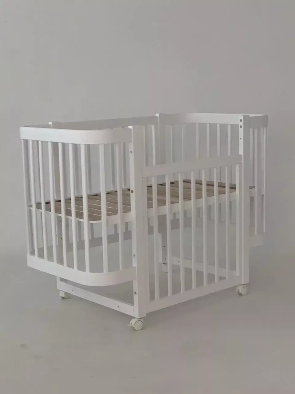 Ліжко дитяче Мія - сучасна та стильна модель, виконана з натурального дерева бук, пофарбована сертифікованими фарбами на водній основі - абсолютно нешкідливими для Вас і Вашого малюка. Бортики ліжечка округлені. У комплекті до ліжечка відразу ж йдуть колеса. Це допоможе легко перемістити ліжечко в потрібне місце кімнати. Також, в комплектацію входить маятник для заколисування малюка - з його допомогою малюк засне швидше і солодше. Ліжечко має опускну передню стінку для зручності батьків. Є можливість поставити днище ліжечка під кутом. Все продумано до дрібниць - для комфорту і безпеки Вашого малюка!