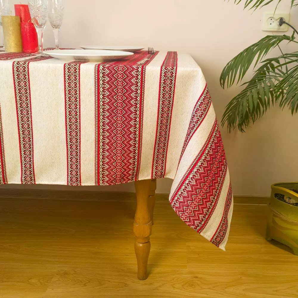 Лляна скатертина з орнаментом Червоний, 180х145 см, Без серветок