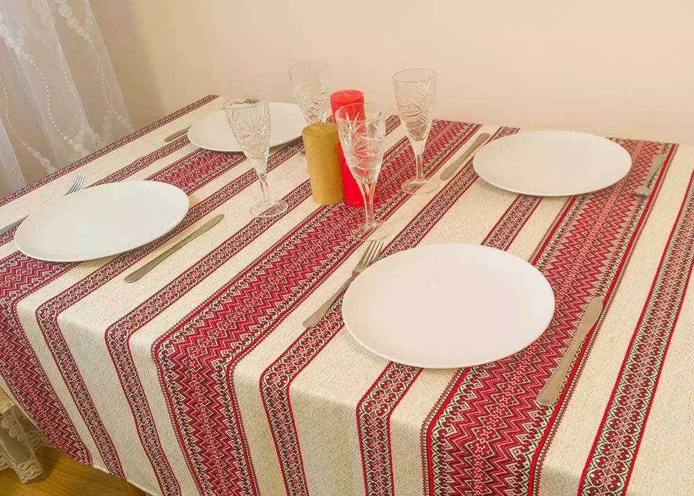 Лляна скатертина з орнаментом Червоний, 220х145 см, Без серветок