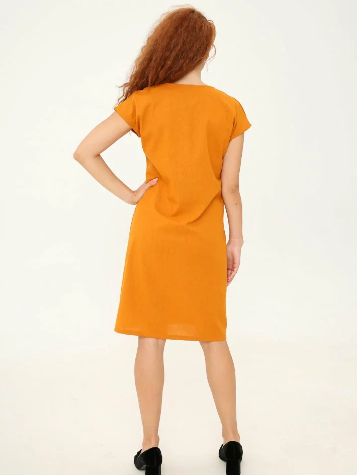 Лляна сукня довжини трохи нижче коліна, прямого силуету, без рукава