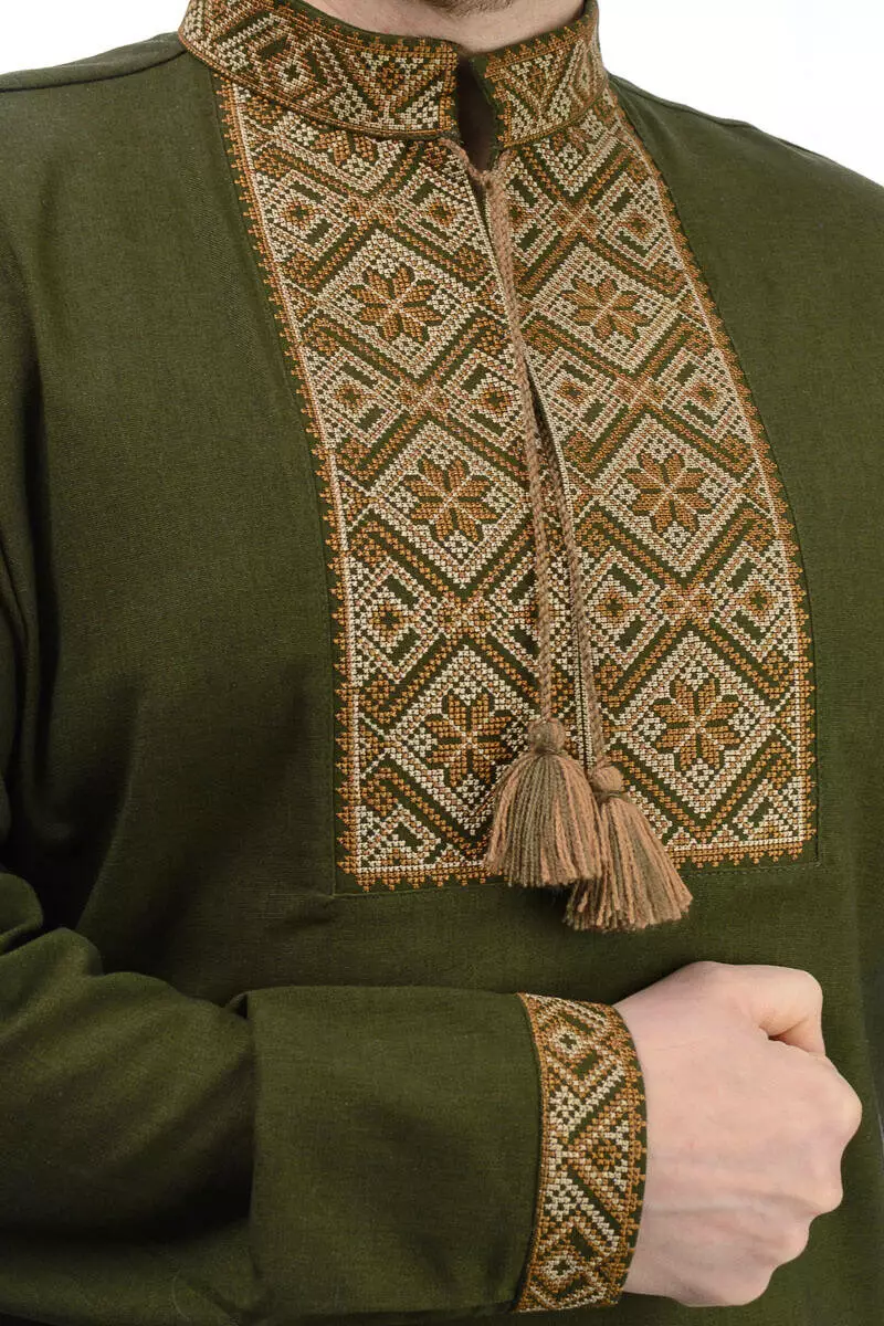 Чоловіча вишиванка в етно стилі - це одяг, що поєднує у собі традиційні елементи української вишивки з сучасними модними тенденціями. Виготовлена з лляного матеріалу і прикрашена машинною вишивкою, імітуючи стиль традиційної української вишивки.