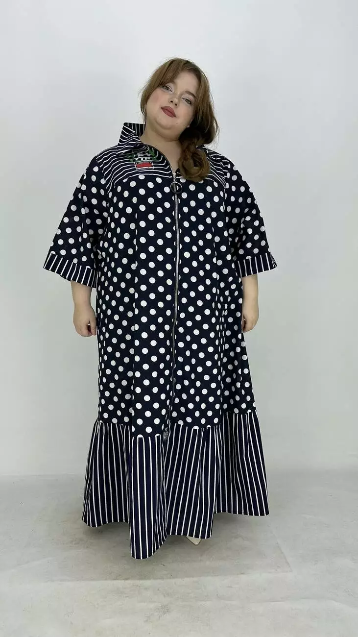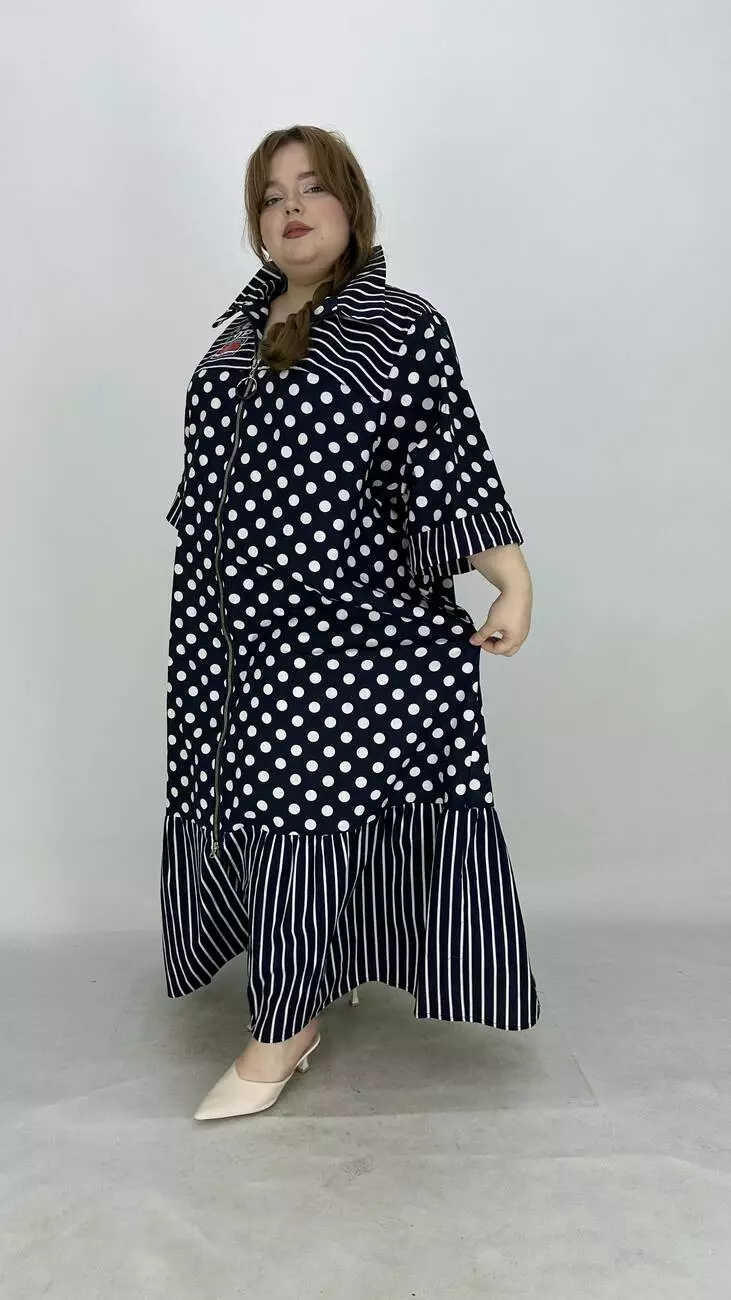 Льняна сукня-сорочка на блискавці великого розміру "Кетті" в горох 66-68 70-72 74-76