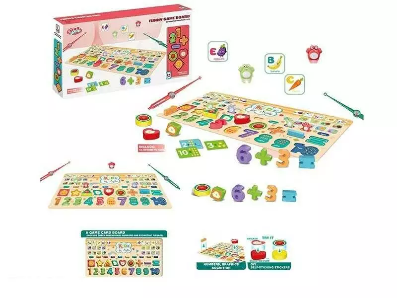 Логічна дошка 159-3 C (36) 3 в 1: арифметична та геометрична ігри, магнітна риболовля, картонна ігрова панель, пластикові деталі, в коробці