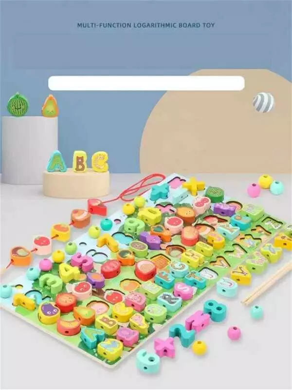 Головна > Каталог > Іграшки > Деревяні іграшки > Логічна дерев’яна дошка C 67048 (20) літери та назви продуктів англійською, сортер, цифри, шнурівка, кульки, палички, в коробці оптом