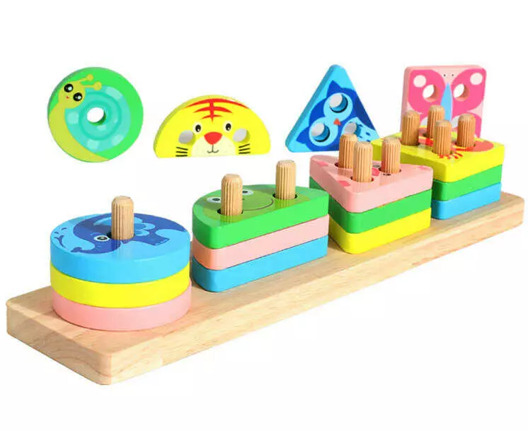 Дерев`яний геометричний сортер 74388 (80) розмір - 26х6.5х5.5 см, кольори, тваринки, комахи, в коробці