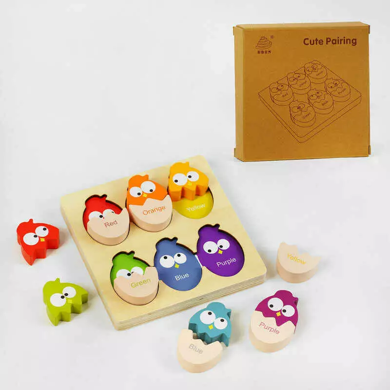 Вкладиші C 60391 (36) дерев`яні, пташки, кольори англійською, в коробці