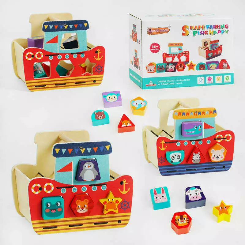 Дерев`яний геометричний сортер C 60402 (36) “Кораблик”, в коробці