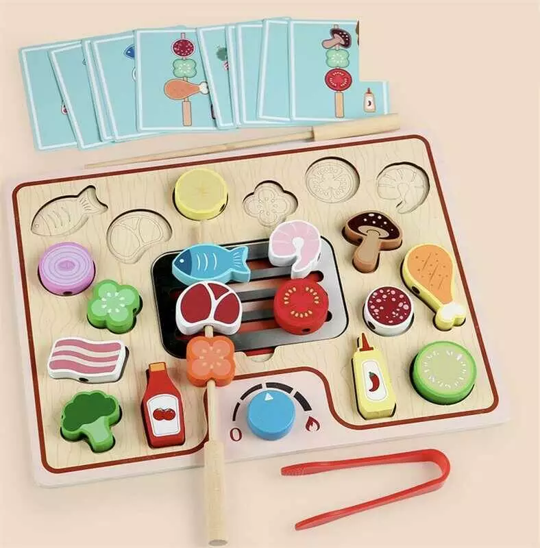 Вкладиші C 74297 (48) дерев’яні, щипці, картки із завданнями, 2 палички, фігурки, в коробці