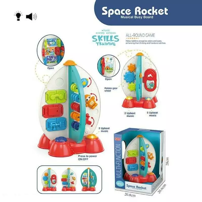 Логічна іграшка RJ 6828 (18) музика, шестерні, обертові лементи, дверцята, рахівничка, годинник, дверцята, в коробці