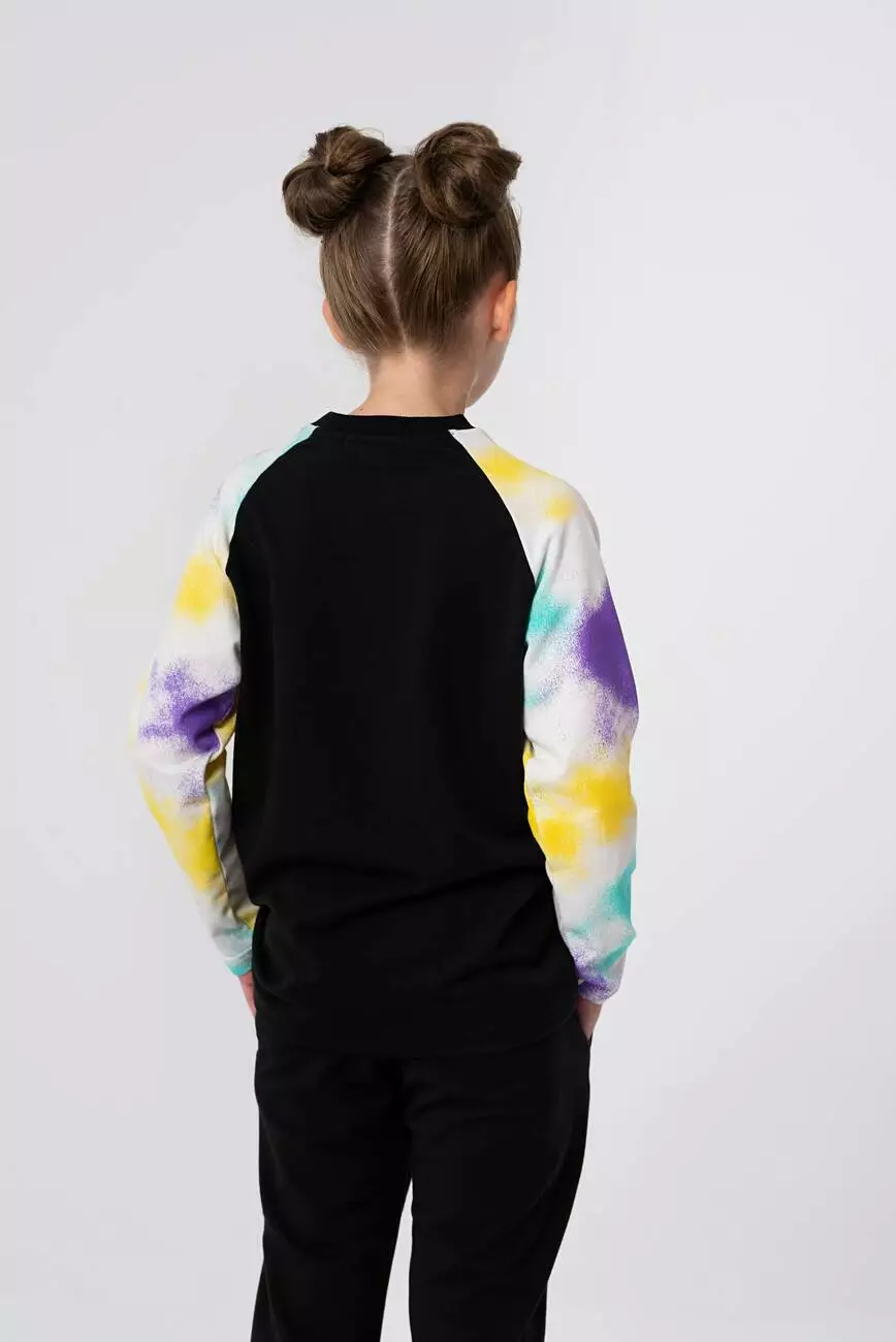 чорний. Рукава з принтом тай-дай. Фасон рукава - реглан. Спереду