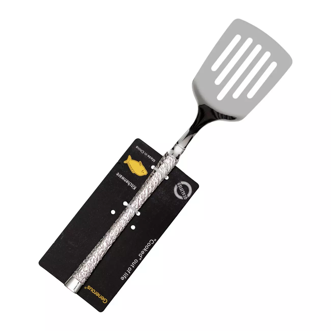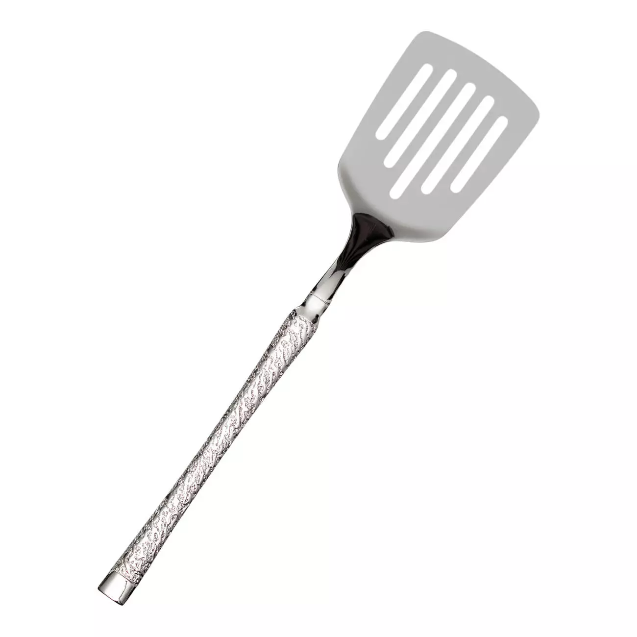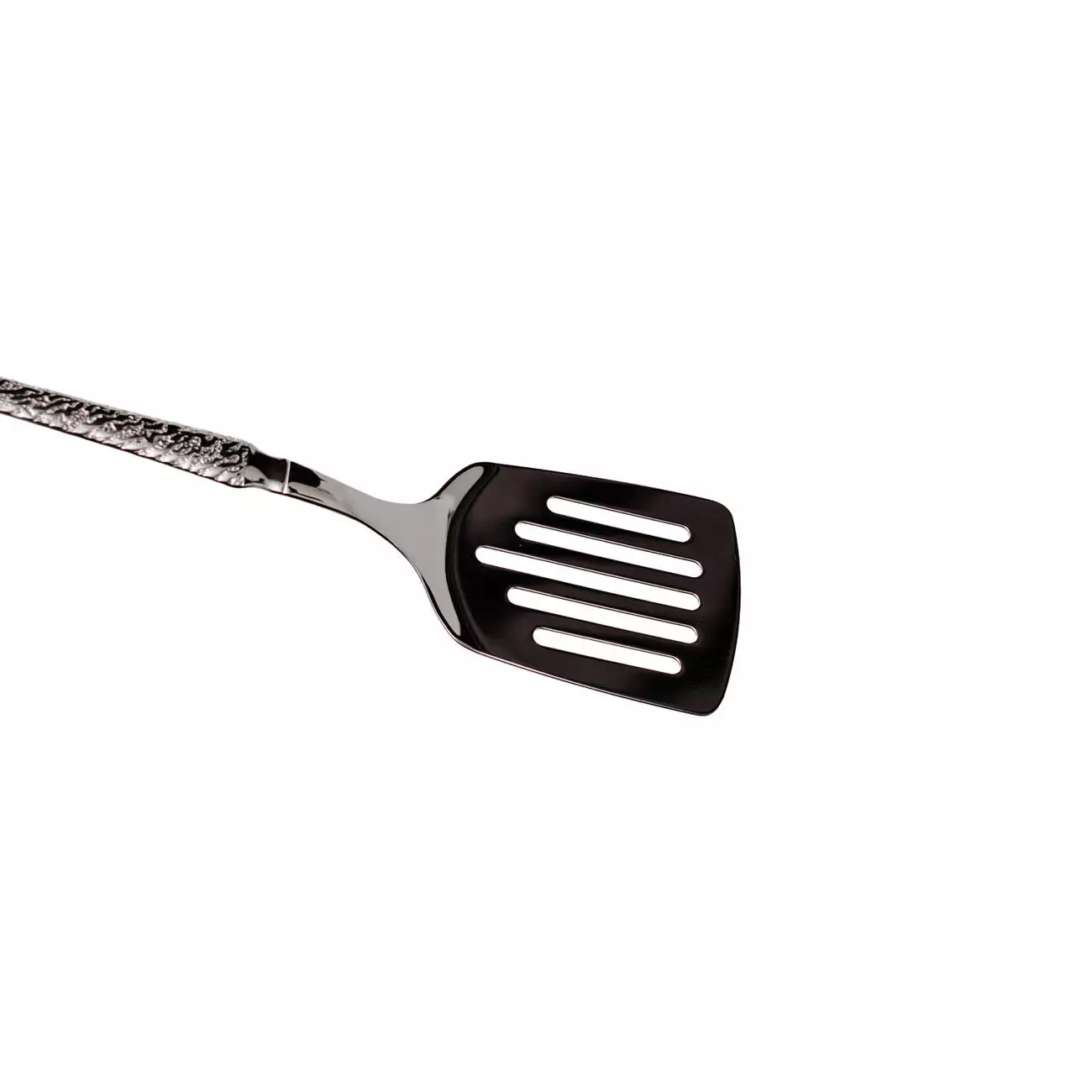 Лопатка для смаження виготовлена із харчової нержавіючої сталі, має стильний дизайн із молотковою текстурою, завдяки чому інструмент можна зручно тримати навіть мокрими руками. Відмінно підходить для приготування страв на сковороді, тонке лезо легко ковзає під стравою, не пошкоджуючи її.