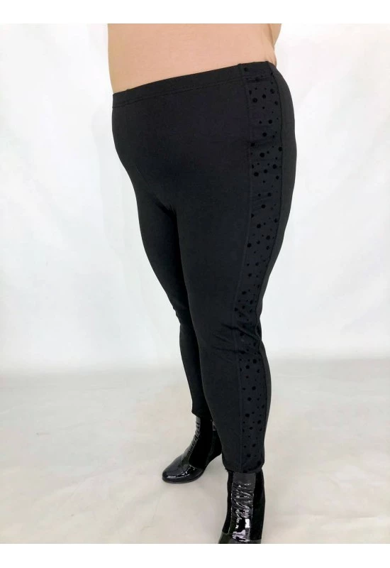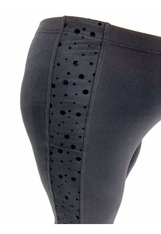 Тканина: мікродайвінг з начесом (100% поліестер) Лосини з мікродайвінгу з начесом з лампасом з декорованою стрейч сіткою з флоком. Дуже хороша розтяжність, теплі, не кашлатиться, не потребує особливого догляду. Посадка висока, зручна. Виріб з розшириним коліном.