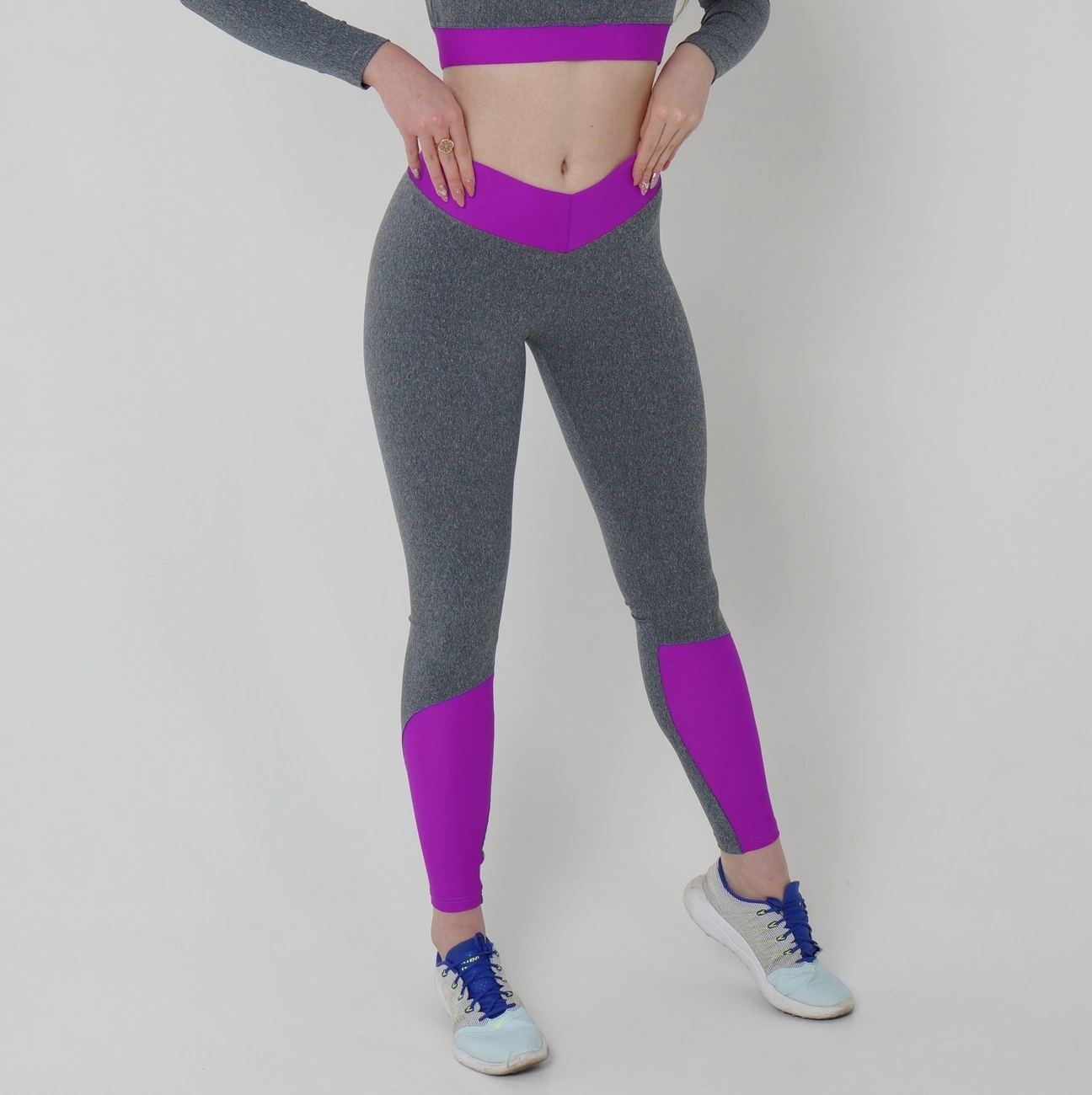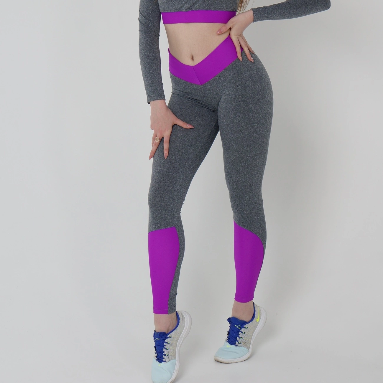 Эти леггинсы  взорвут весь мир! Фиолетовый пояс и также нижние вставки, очень хорошо дополняют серый цвет. Изготовлены из бифлекса (80% нейлон, 20% спандекс).  Скрывают недостатки, удобная высокая посадка, отличная утяжка, не сковывают движения. При занятии спортом, вы будете чувствовать себя комфортно и  уверенно, так как они не просвечивают!
