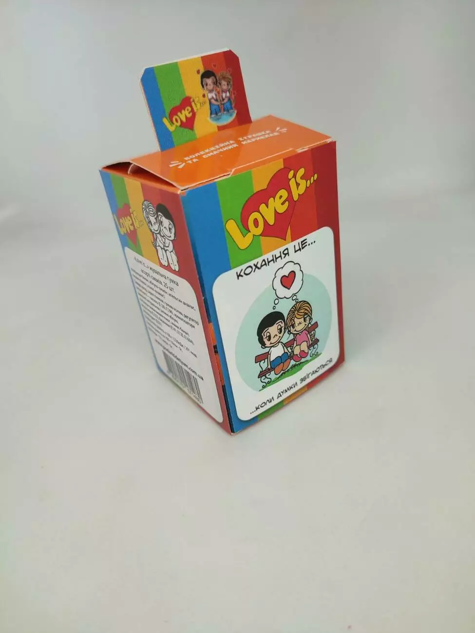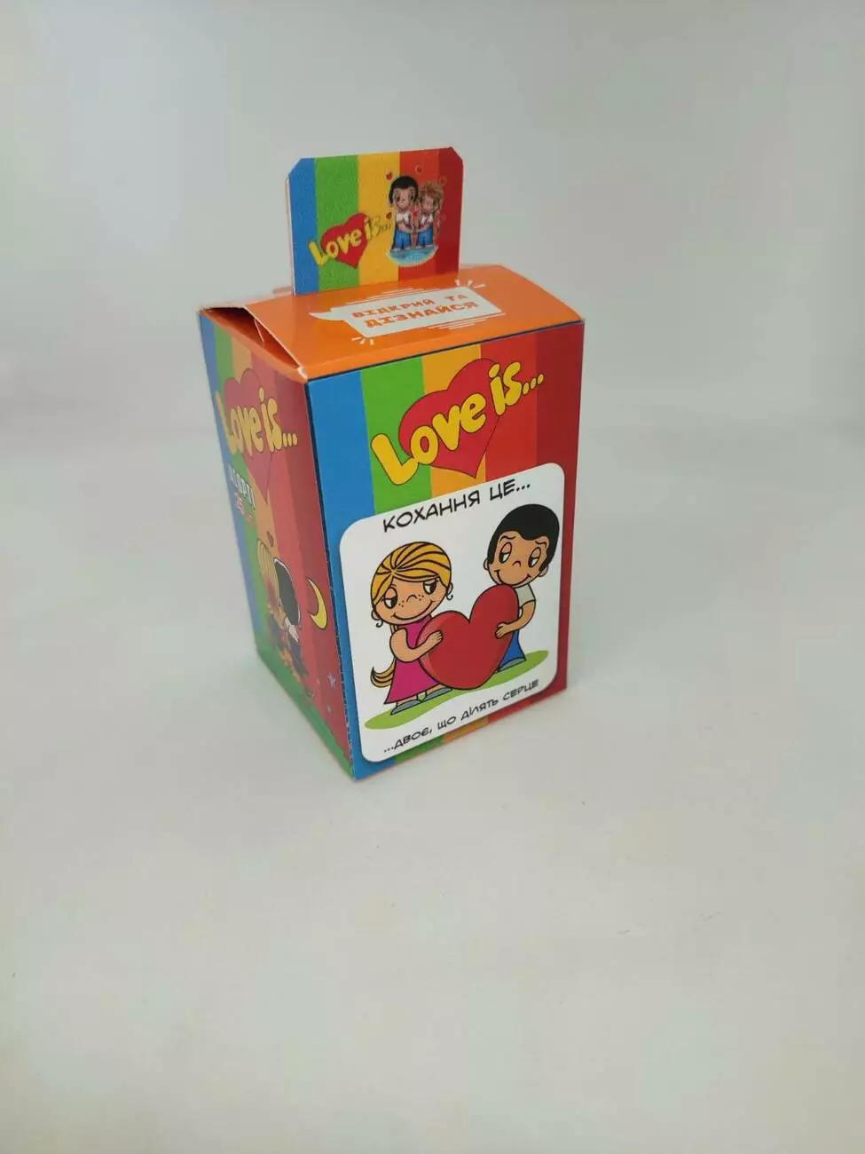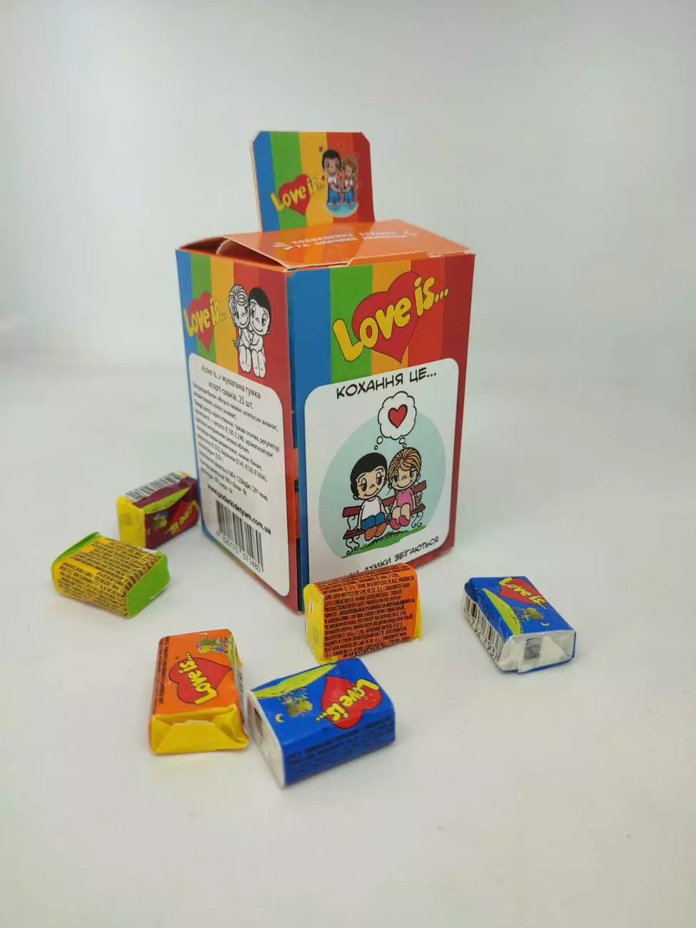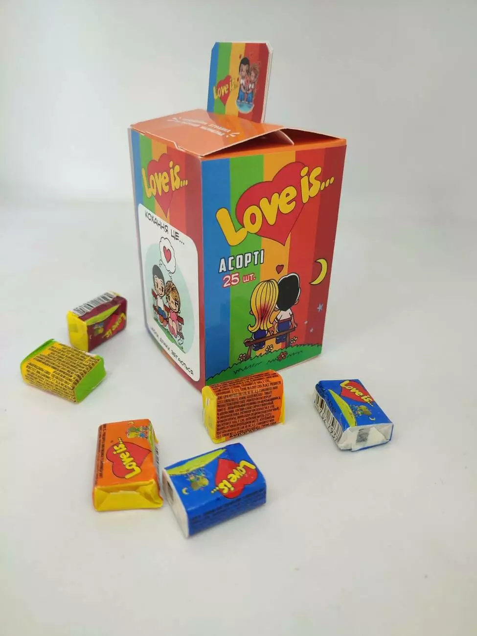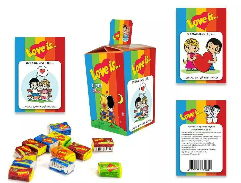 Популярные жевательные резинки с историями о любви на вкладышах. Подарите и вы самое волнительное чувство вашим любимым с жвачками Love is! В коробке можно спрятать обручальное кольцо, устроить романтический вечер из картинки, которая понравилась вашей половинке. Сохраняйте любовь и наслаждайтесь удивительным вкусом жвачки.
