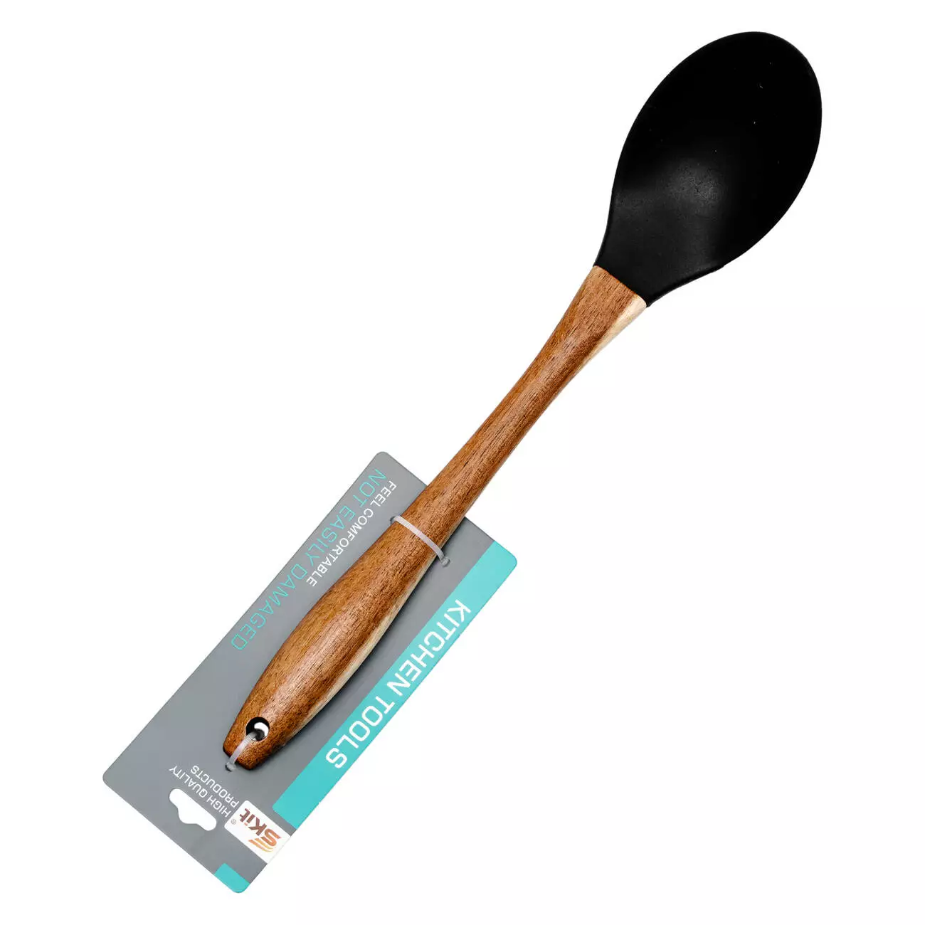 Ложка має довгу дерев'яну ручку, що мінімізує можливість отримання опіків, і підходить для посуду з антипригарним покриттям. Аксесуар можна мити вручну, або в посудомийній машині.