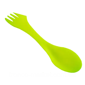 Ложка-вилка, Артикул 167099,  параметры изделия : линейные размеры ,мм : 170 х 35 х 20, объем -;  кол-во в упаковке: 20 шт. Цвета  в ассортименте :зелена прозора,малинова прозора,мікс СМ,оливкова,світло-оранжева,темно-бузкова,темно-жовта.