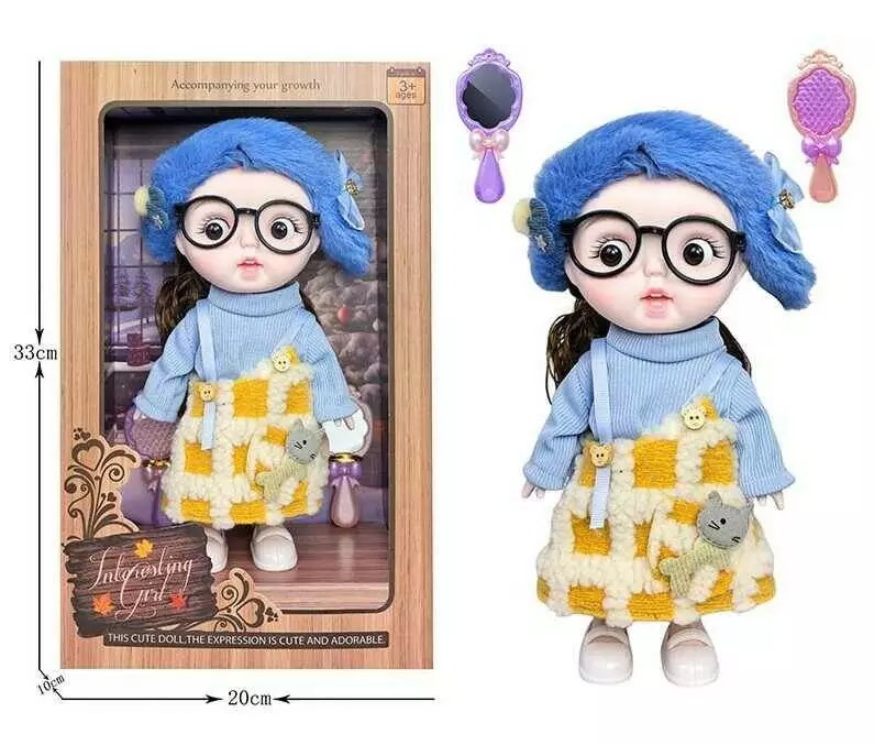 Лялька 3808 B23 (36/2) висота 27 см, пісні англійською, вітається, сміється, підсвічування, шарнірні кінцівки, окуляри, дзеркальце, щітка, в коробці