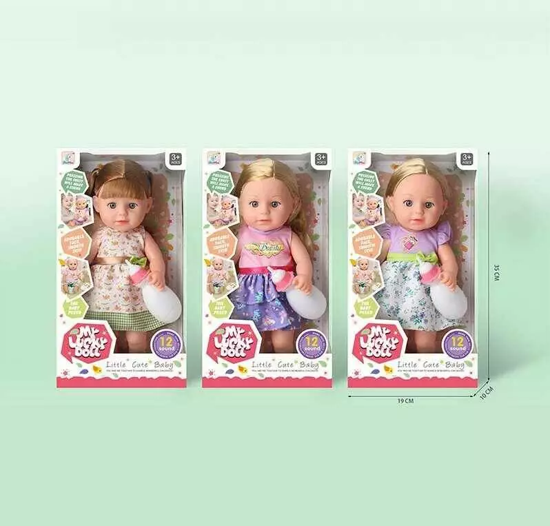 Лялька 59019 (36/2) 3 види, висота: 32 см, голосовий чіп, пластикова, імітація пластикових очей, пляшечка, в коробці, ВИДАЄТЬСЯ МІКС ВИДІВ