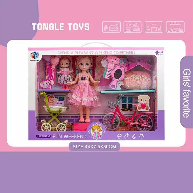 Набір ляльок 6688-28 (30) 2 ляльки, висота: 22 см та 10 см, імітація скляних очей, шарнірні суглоби, аксесуари, візочок, велосипед, в коробці