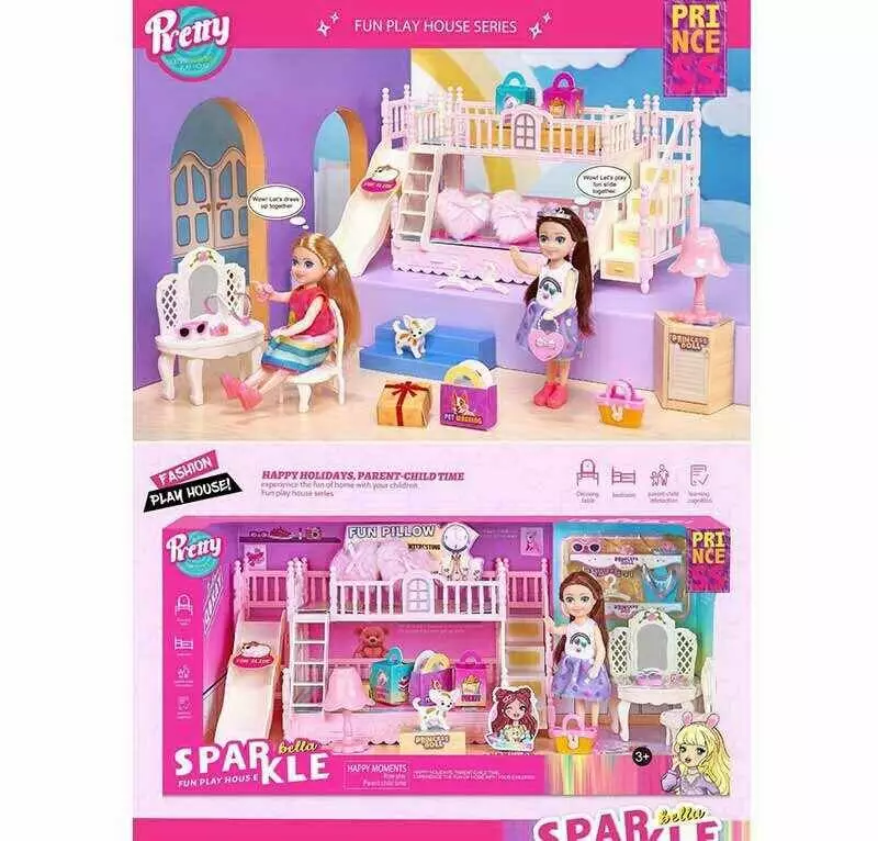 Лялька 7028 (16) 14 см, улюбленець, аксесуари, меблі, ліжко, столик, дзеркало, знімний одяг, в коробці