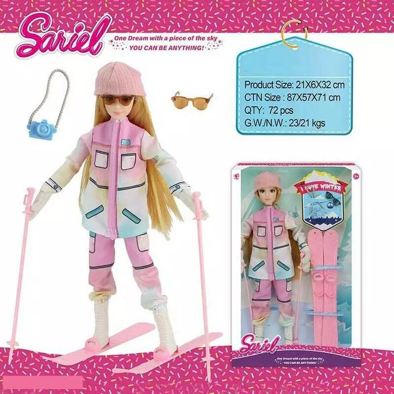 Головна > Каталог > Іграшки > Ляльки > Лялька 92011 B (72/2) висота: 30 см, шарнірні з’єднання, голова і руки: гума, тіло і ноги: пластик, знімний одяг, взуття, лижі, аксесуари, в коробці оптом