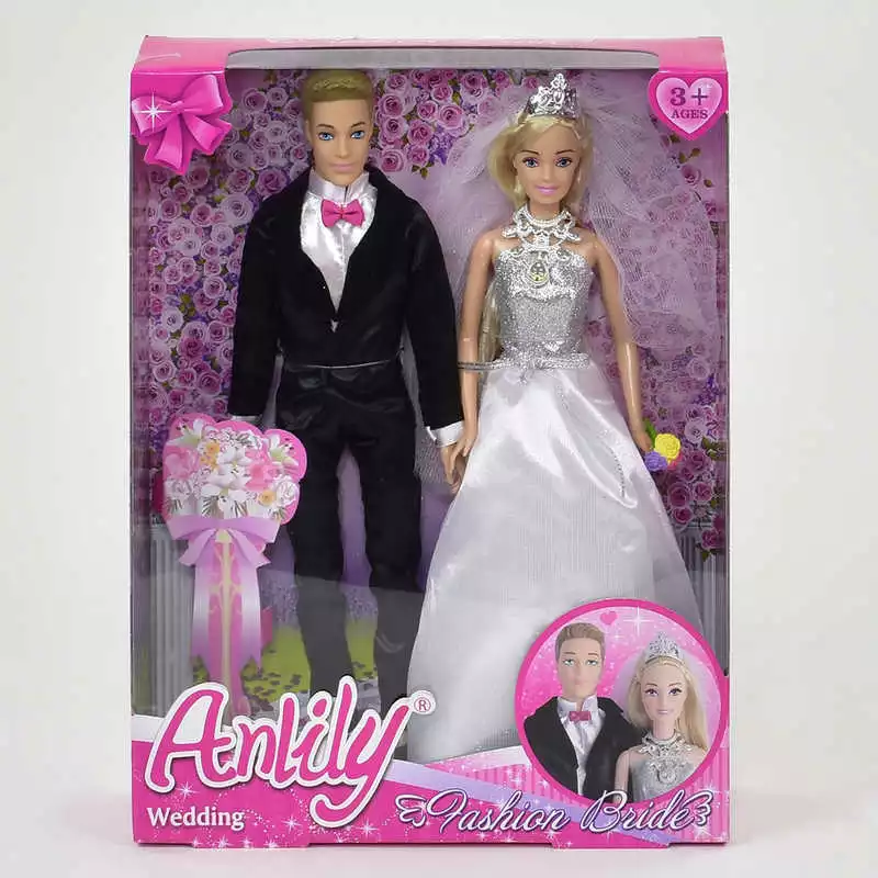Кожна дівчинка, з малих років, мріє про пишне весілля з усіма атрибутами цього урочистого заходу: про красивому платті, лімузині, довгу фату і, звичайно ж, про принца-нареченого. Гра в весілля - одна з улюблених забав дуже багатьох дівчаток. Лялька 99026 наречений і наречена в коробці - це кращий варіант, що ідеально підходить для таких цілей. Красива лялькова пара у весільному вбранні виглядає щасливо і дуже урочисто. Лялечка-наречена одягнена в пишне, біле з сріблом, плаття, красиве блискуче намисто і корону з фатою. Її наречений - справжнісінький еталон елегантності, одягнений в чорний костюм, білу сорочку і рожеву метелика. Вікове обмеження - 3+.
