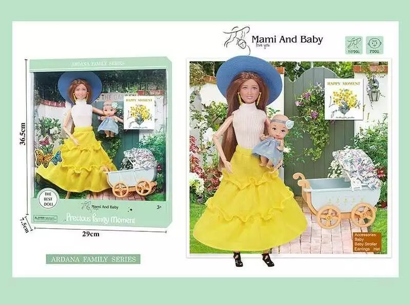 Набір ляльок A 790-3 (24/2) висота 30 см, немовля, зйомне взуття, капелюх, аксесуари, візочок, в коробці